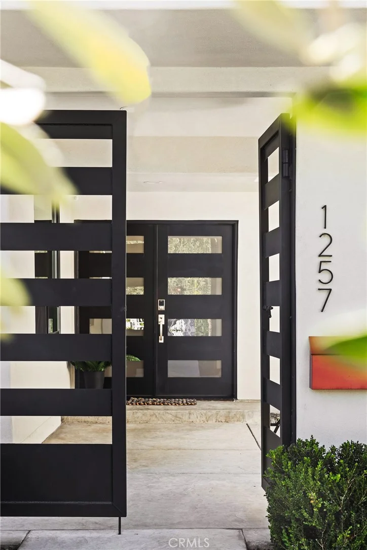 Hillside views and contemporary architecture set the tone for this single-level home near Sinsheimer Park. A breezeway entry between the home and detached two-car garage creates a striking architectural approach to the front door. Inside, oversized doors and windows fill the interior with natural light while framing hillside views. Anchoring the living room is a dramatic slate fireplace wall with floating wood shelves and wide plank flooring. The kitchen includes Viking appliances, quartz countertops, and an eat-in dining area that connects with the main gathering spaces. Wide hallways and large windows lead to the bedroom wing. The spacious primary suite opens to a private patio with a sauna. Its bathroom includes slate flooring, dual vanities, a glass-enclosed shower, and a walk-in closet. Two additional bedrooms share a nearby full bathroom with dual vanities and ample storage. Set on an expansive 11,500± sq. ft. parcel, an elevated deck spans the length of the home and captures hillside views. Below, a covered patio includes the spa and overlooks the landscaped yard. This area is planted with mature olive trees, a small citrus orchard, and a rose garden. The garage is finished with epoxy flooring and includes an attached storage room. Elevated views, layered outdoor spaces, and distinctive architecture come together to create a home that feels both private and connected to its surroundings.