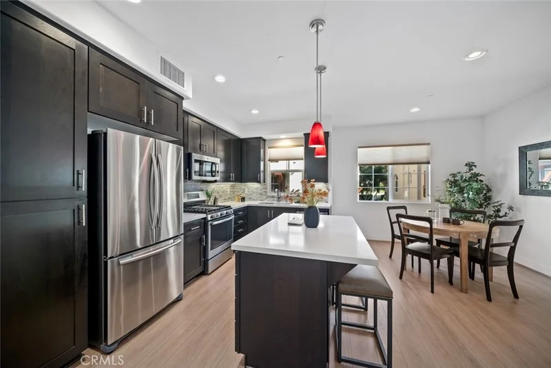 Meticulously maintained 3-bedroom, 3.5-bath townhome featuring warm, modern finishes and a comfortable, functional layout. The entry-level bedroom and full bath offers a private retreat for guests, extended family, or a versatile home office. The main living level features an open-concept great room that flows seamlessly into a beautifully appointed kitchen with espresso cabinetry, quartz countertops, and a custom tile backsplash. The kitchen includes a charming breakfast nook for casual meals, while a designated formal dining area offers the perfect space for hosting and gatherings. Spacious balcony, ideal for relaxing and enjoying the hill views. Upstairs, the spacious primary suite offers a walk-in closet and large bath with dual sinks and a distinctive river rock shower. The secondary upstairs bedroom includes its own ensuite bath, providing comfortable and private space for family, guests, or hobbies. Additional highlights include stylish window coverings, laundry room, and a two-car garage with extra guest parking nearby. Enjoy a relaxed, low-maintenance lifestyle in a charming community featuring creekside walking trails, gardens, a fire pit, BBQ area, and outdoor games like bocce and horseshoes. Ideally located just minutes from local cafés, breweries, restaurants, shopping, hiking trails, and more; while still offering easy access to downtown, parks and beaches.