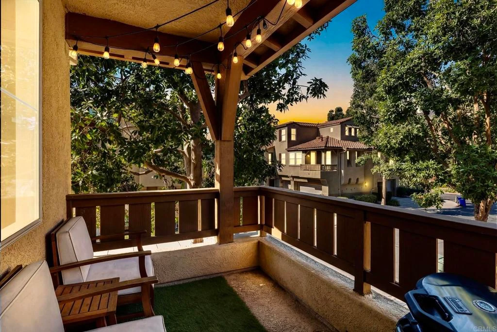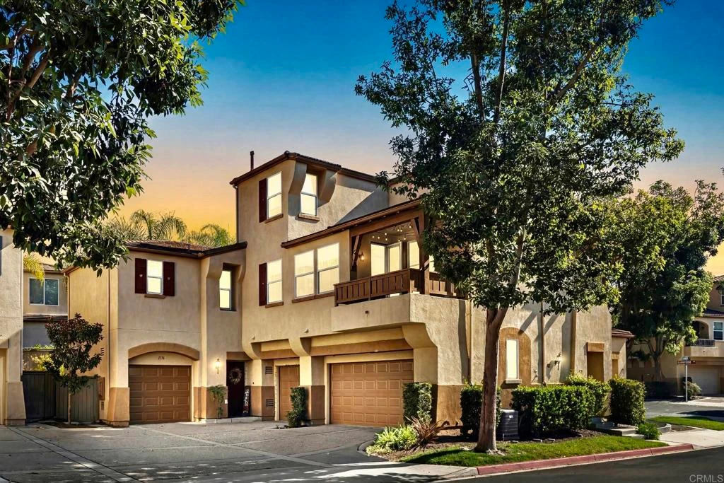 Welcome to one of the most desirable gated communities in San Elijo Hills, where walkability, top-rated schools, and resort-style amenities come together. This beautifully maintained 2-bedroom + office, 2-bath home offers 1,342 square feet of light-filled living with soaring ceilings and an ideal, functional floorplan. Located in the gated Springfield community with access to a private pool and just a short stroll to top-rated elementary and middle schools, parks, and town center shopping, the location is hard to beat. Inside, the open-concept main living area features luxury vinyl plank flooring, abundant natural light, and a seamless flow between the living, dining, and kitchen spaces. The inviting living room is anchored by a stacked stone fireplace hearth and opens to a private balcony, perfect for morning coffee or evening relaxation. The kitchen offers crisp white cabinetry, tiled countertops, gas cooking, and a breakfast bar that connects easily to the dining area, making everyday living and entertaining effortless. Fresh new carpet on the stairway and in the primary suite adds a crisp, move-in-ready feel. The primary bedroom features mirrored closet doors and an en-suite bath with dual sinks and a shower/tub combination. A versatile office with custom French doors currently used as a nursery, provides flexible space ideal for a home office, guest room, or potential third bedroom. Thoughtfully designed with great natural light, clean finishes, and move-in-ready appeal, this home offers both comfort and convenience in one of North County’s most sought-after neighborhoods. Enjoy The San Elijo Cafe (internet cafe w/ free web access) along with the nearly completed 18 miles of trails & 19 acre park and 1000 acres of open space. Seller to select services. Room dimensions & square footage are approximate, per builder & assessor`s record. Buyer to verify all before COE.