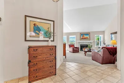 Step into this enchanting Lake San Marcos home and prepare to be captivated by breathtaking 180 degree hillside views from the moment you open the door. Every room is designed to showcase these stunning vistas, creating a serene escape you will love coming home to. The primary suite offers a large walk in closet and fabulous hillside views. The living room greets you with soaring ceilings and a cozy fireplace adorned with elegant ledgestone accents, perfect for unwinding after a long day. The bright and inviting kitchen boasts Corian countertops, ample cabinet space, stainless steel appliances, and a delightful breakfast nook. Both bathrooms have been beautifully updated, featuring sleek walk-in showers with modern tilework, chic new vanities, and stylish fixtures. Outside, the wraparound yard offers multiple patio areas, including a gated front courtyard, where you can relax, entertain, or simply soak in the incredible views. Additional highlights include newer windows throughout, an attached two-car garage, and the privacy of an end unit with only one shared wall. Nestled on a peaceful cul-de-sac, this home is just a short stroll from the Lakehouse Hotel & Resort and all the fantastic community amenities that Lake San Marcos has to offer. This is more than a home, it is your personal retreat, ready and waiting for you!