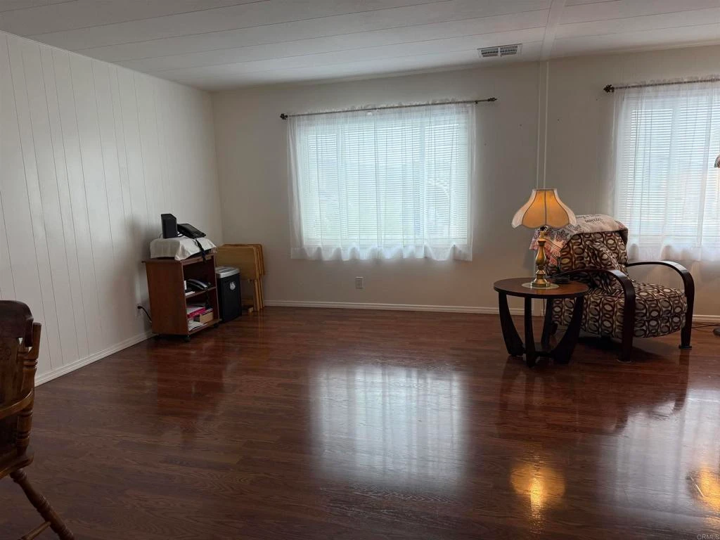 Ready to move in, a beautifully maintained double-wide residence situated on a spacious corner lot. This home is located in the sought after 55+commuity of Madrid Manor in San Marcos. It features upgrades and amenities, including wood-look laminate flooring throughout, newer kitchen appliances, two skylights, and a newer roof. The water heater has also been recently replaced by the sellers. The main suite offers a walk-in closet and a walk-in shower. Additionally, there is an 8 x 18 California Room, providing versatile extra space ideal for an office or craft area. The property also includes an extended carport with additional guest parking, conveniently located adjacent to the main guest parking area. Residents will also benefit from the many park amenities and activities available for their enjoyment.