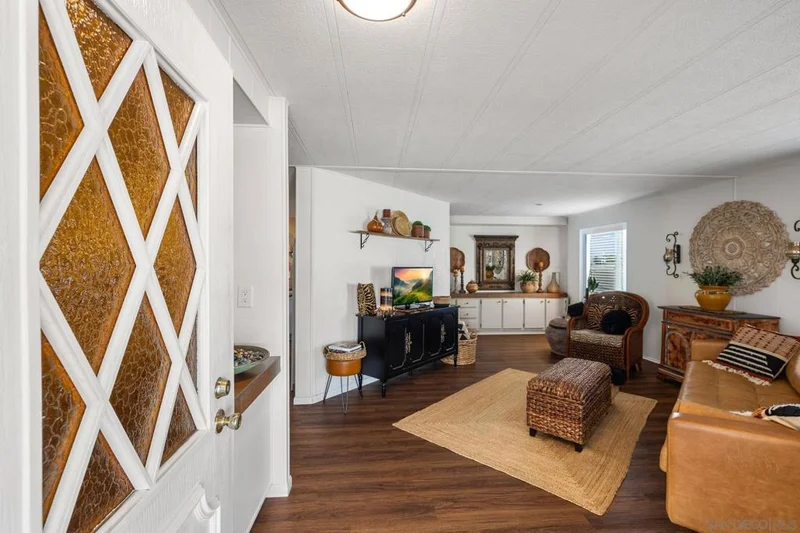 This beautiful, LAND OWNED home has a lovely floor plan, with light and airy spaces, and an open concept. Everything is in excellent condition, from the luxury primary suite with tiled bath to the large second bedroom. The addition bath is fully upgraded with tile. The kitchen is a delight with upgrades throughout. The residence has a 433 A permanent foundation for excellent financing. The roof, HVAC, AC, and water heater have been recently upgraded. Gorgeous side patio opens up a lovely backyard with easy maintenance and is decorator-perfect. Also enjoying low monthly costs with HOA fees of $222 trash service at $24.07, and sewer at $31.19. Madrid Manor offers a vibrant, resort-style lifestyle with outstanding amenities, including a large clubhouse, sparkling pool and spa, fitness center, aerobics room, tennis and pickleball courts, mini golf walking paths, RV/boat/trailer parking, and beautifully maintained grounds. Ideally located near shopping, dining, and medical services, this home delivers an exceptional combination of comfort, value, and community living. Don’t miss the opportunity to experience one of San Marcos’s most sought-after 55+ neighborhoods!