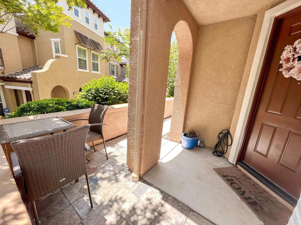 Welcome to this beautifully upgraded corner unit townhouse in the highly desirable San Elijo Hills neighborhood of Morgans Corner. Ideally situated as an end unit, this home offers abundant natural light and an elevated entry with picturesque mountain views. Enjoy indoor-outdoor living with a charming front patio, the perfect spot for morning coffee or an evening wind down. Inside, the home feels light and bright with fresh interior paint, recessed lighting, ceiling fans, and luxury vinyl plank flooring that flows seamlessly throughout the main living areas. The modern kitchen is designed to impress, featuring elegant quartz countertops, ample cabinetry, and a spacious pantry for optimal storage. Whether you're entertaining or enjoying a quiet evening at home next to the cozy electric fireplace, the open layout creates a welcoming and functional space. Residents of this sought-after community enjoy access to resort-style amenities, including a sparkling pool and relaxing spa, perfect for soaking up the Southern California sunshine. This exceptional Morgans Corner townhouse combines comfort, style, and location all in one of North County’s most desirable neighborhoods. Morgans Corner neighborhood in San Elijo Hills, community includes high ranking schools (Middle & Elementary), ballparks, soccer field, picnic tables, bbq, playgrounds, dog park and community center, and all are within walking distance. Enjoy the shops and eateries along with the nearly completed 18 miles of trails & 19 acre park and 1000 acres of open space. Seller to select services. Room dimensions & sq footage are approximate, per builder & assessor`s record. Mello roos is estimated. All MLS & marketing info is approximate & not guaranteed. Buyer to verify all info to satisfy self with the property.