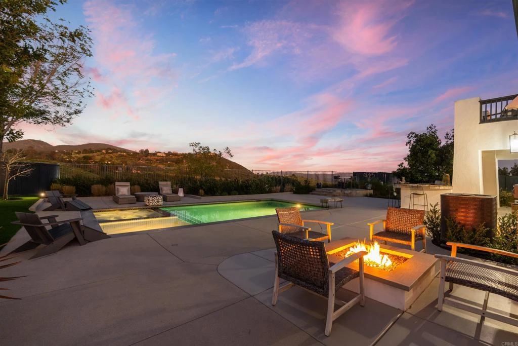 Positioned at the end of a peaceful cul-de-sac in Mariner’s Point, this oversized corner-lot residence offers a rare combination of privacy, open canyon views, and no rear neighbors. The setting feels calm, spacious, and increasingly hard to find in San Elijo Hills. Spanning nearly 3,000 square feet with 4 bedrooms and 3.5 baths, the home balances refined design with thoughtful functionality and seamless indoor-outdoor living. The approach feels both private and welcoming, with mature landscaping framing the entry and enhancing the sense of arrival. Inside, the main level is designed for everyday ease and effortless entertaining. The expansive kitchen features a large center island, walk-in pantry, and abundant cabinetry, opening directly to the living room with fireplace and sliding doors to the backyard. The flow between spaces supports both gatherings and daily routines with equal comfort. A separate downstairs sitting room with its own fireplace provides additional living space ideal for a media lounge, playroom, or quiet retreat. The former formal dining room is currently configured as a dedicated office, offering valuable work-from-home functionality without sacrificing living areas. A main-level bedroom with private en-suite bath offers practical accommodations for guests or multigenerational living, a layout feature buyers consistently value. Upstairs, the primary suite is thoughtfully positioned for privacy, with a balcony overlooking the backyard and canyon beyond. The spa-inspired bath includes a centrally positioned soaking tub, dual vanities, a walk-in shower, and an expansive wraparound closet with built-ins. Two additional bedrooms, a spacious bonus room with ocean views, and a dedicated laundry room with sink and extensive cabinetry complete the upper level, offering versatility for evolving household needs. Built-in hallway storage and a generous under-stair closet further enhance daily livability. The backyard is where this property truly distinguishes itself. Recently upgraded with a stunning saltwater pool and spa, the outdoor space was intentionally designed to maximize usability and long-term enjoyment. A built-in BBQ station with refrigerator, bar seating, and expansive prep space anchors the yard, while a gas firepit creates a comfortable gathering area. Low-maintenance turf enhances functionality, and the protected canyon backdrop ensures enduring privacy and unobstructed sunset views. San Elijo Hills is known for its rare blend of community connection and natural beauty. Miles of hiking and walking trails weave throughout the neighborhood, and nearby Double Peak Park offers panoramic coastal and mountain views residents deeply appreciate. The town center brings coffee shops, restaurants, parks, and community events together in a way that feels vibrant yet manageable. Located within the highly regarded San Marcos Unified School District, this home offers a compelling and increasingly scarce balance of privacy, flexibility, and connected community living in one of North County’s most established settings.