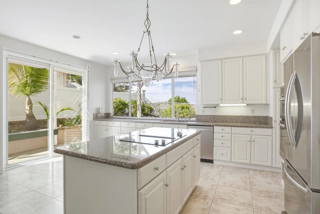 Welcome to 881 Windridge Circle in Chancellors Crest within Discovery Hills—one of the area’s most exclusive enclaves—where light, space, and lifestyle come together in the heart of San Marcos’ beloved Discovery Lake community. The home’s charming curb appeal and low-maintenance hardscaped front yard set the tone. Step inside to soaring ceilings, abundant natural light throughout, and an open floorplan that feels expansive and inviting. Large windows and crisp white shutters create a bright, timeless aesthetic. The open kitchen area flows seamlessly to the living space and backyard, creating ideal indoor-outdoor living. The main living area features a fireplace, adding warmth and charm. This 4-bedroom, 3-bath home offers approximately 2,349 square feet of well-designed living space, including a highly desirable main-level bedroom or office and full bath. The kitchen is functional and welcoming, featuring a walk-in pantry and breakfast nook. Upstairs, the spacious primary suite is a true retreat, featuring an expansive private deck with beautiful sunset, mountain, and hill views, along with its own fireplace for added comfort. The ensuite bath offers a soaking tub, walk-in shower, dual vanities, and ample space to unwind. Two additional upstairs guest bedrooms complete the second level. Step outside to a private backyard featuring low-maintenance turf, clean, usable, and ideal for entertaining or everyday outdoor living!