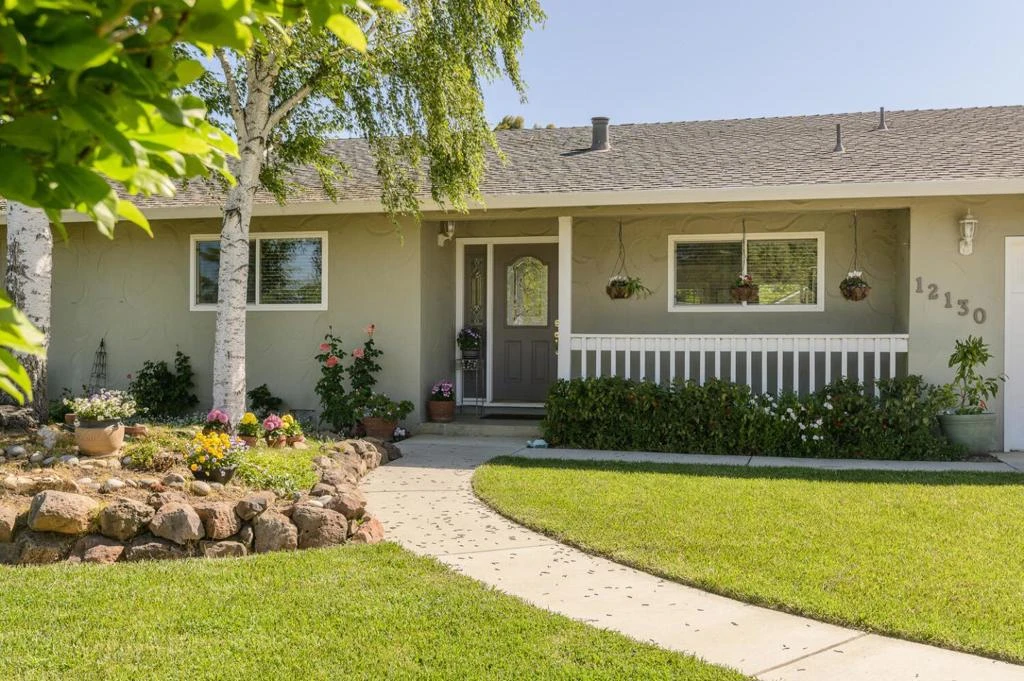 Wonderful 4 bedroom Ranchette in San Martin. Lovely single story home with two primary suites and updated open Kitchen with nook. Living room with rock fireplace. Bright kitchen with gas range, custom tile backsplash and stainless appliances. All bedrooms have overhead lighting, window blinds, and ceiling fans. Central AC, dual pane windows, water softener, and newer roof. Sparkling pool (solar and gas heated) with relaxing covered patio with ceiling fan. Almost an acre of amenities including detached 2-car garage with attached office/studio complete with heat and AC. 6-stall horse barn with hay storage, pipe corral paddocks, round pen, foaling stall, wash rack, and covered pony area. Tractor shed, separate storage shed, commercial air compressor, and plenty of extra storage.