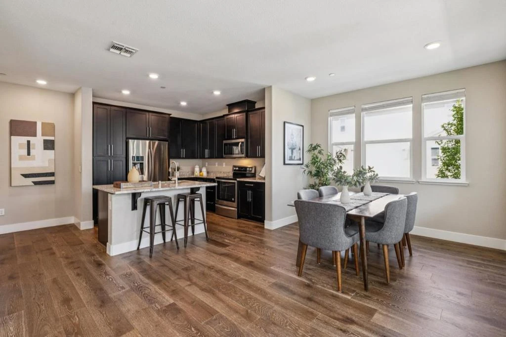 This sleek, modern, light filled corner unit Townhome is generous and efficiently designed, using stylish materials, offering an open floorplan and high ceilings. The upper bedroom wing offers convenience and privacy. It includes 2 en-suites with the primary boasting a generous, designer bathroom and walk-in closet. This is also where the laundry and utilities are located plus additional storage. The main level is an open concept design allowing for many to gather and share in this elegant space. The balcony is the perfect spot to sit and read or watch the changing sky. The oversized garage offers more than just a place to park but an ample storage area as well! Solar Panels too! All this is conveniently located to the thriving downtowns of both San Mateo and Burlingame, and you are near amenities and commute access. The best part is you are close to the miles of the Bay Trail and all the splendor that has to offer.