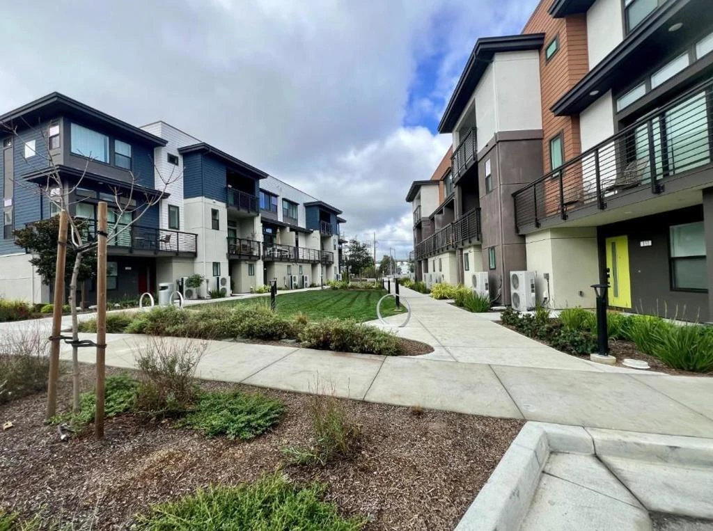 Enjoy modern living in this stylish, energy-efficient home featuring owned solar and smart home technology features designed to help keep utility costs low. The main level showcases a bright, open-concept layout centered around a sleek kitchen with stainless steel appliances, a waterfall-edge island, and convenient breakfast bar perfect for both everyday living and entertaining. Take in views of the community landscaped lawn, play area, and BBQ space from the main and upper-level balconies, or enjoy scenic outlooks of the western hills through expansive picture windows. Upstairs, two spacious bedrooms offer comfort and privacy, each with its own climate control, walk-in closet, and beautifully appointed ensuite bathroom. A washer and dryer are thoughtfully positioned between the bedrooms for added convenience. Additional highlights include a generous two-car tandem garage with extra storage space, plentiful guest parking, and access to a community garden. Ideally located just minutes from shopping, dining, and major commuter routes. Pet-friendly living.