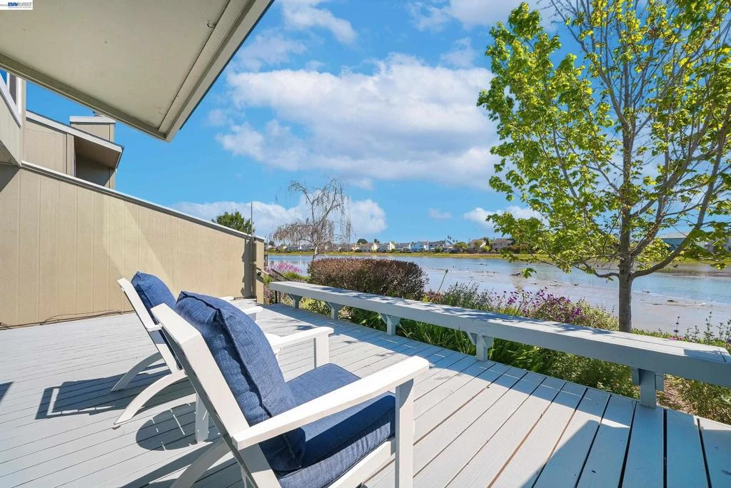 Beautifully updated 3BD/2BA end-unit townhouse offering 1,450 sq ft of modern living in desirable Laguna Vista. A newly painted front deck welcomes you into a thoughtfully designed floor plan. The main level features an updated kitchen with white cabinetry, granite countertops, and stainless-steel appliances, seamlessly connecting to a spacious living and dining area with serene waterfront views. Sliding glass doors open to a large, newly painted deck—perfect for relaxing or entertaining by the lagoon. A cozy living room with fireplace, plus a bedroom and full bath, complete the first floor. Upstairs, two bedrooms boast vaulted ceilings, expansive windows, and tranquil water views, creating a bright and airy ambiance. The primary suite overlooks the lagoon and includes a versatile bonus space ideal for a home office, reading nook, or additional storage. An updated bath with skylights enhances the upper level. Enjoy community amenities including a beautifully maintained garden, sparkling pool, and clubhouse. The 2-car garage features built-in cabinetry for ample storage. Conveniently located near Los Prados Park, Bay Trail, Marina Plaza shopping and dining, with easy access to Hwy 101 & 92. A perfect blend of peaceful waterfront living and everyday convenience in San Mateo!