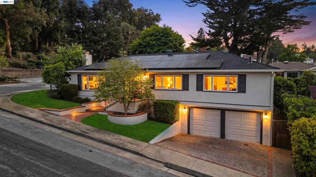 EXTENSIVELY UPGRADED WITH INTENTION AND QUALITY THROUGHOUT. Comprehensively renovated, this home showcases thoughtful improvements across every major system and living space. Structural upgrades include a NEW ROOF, NEW GUTTERS, and 20-PANEL SUNPOWER SOLAR SYSTEM (2022), along with FULL HOME INSULATION (attic and crawlspace), UPGRADED 200amp ELECTRICAL PANELS, ALL-NEW ELECTRICAL WIRING TO CODE, and a HIGH-EFFICIENCY HEAT PUMP SYSTEM WITH AC. Additional features include SMART THERMOSTATS, EV-READY 220V OUTLETS, ENGINEERED WOOD FLOORING AND RECESSED LED LIGHTING THROUGHOUT. The CHEF’S KITCHEN is beautifully appointed with CUSTOM CABINETRY, QUARTZ COUNTERTOPS, and a FULL SUITE OF BOSCH APPLIANCES, including a 36” GAS RANGE, COUNTER DEPTH BUILT-IN REFRIGERATOR, DISHWASHER, AND DRAWER MICROWAVE. Bathrooms have been RENOVATED WITH NEW TIMELESS SUBWAY TILE, MODERN FIXTURES, AND CUSTOM VANITIES, while the PRIMARY SUITE features a WALK-IN SHOWER for a more open, modern layout. The GARAGE FEATURES NEW EPOXY FLOOR (2025). BONUS ARCHITECTURAL PLANS FOR A FUTURE ADU, offering EXPANSION, UPSIDE POTENTIAL, multi-generational living. Enjoy sweeping BAY AND CITY VIEWS from a beautifully designed, FULLY USABLE LOT featuring BBQ, ENTERTAINING AREAS, A LUSH GRASS PLAY AREA, SERENE and MATURE TREES