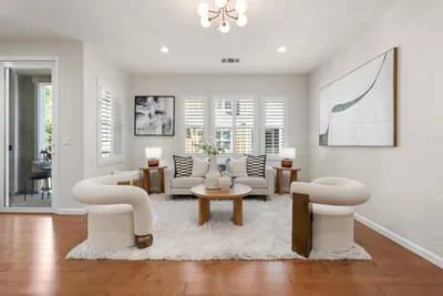 Stunning 12-year-new contemporary end-unit townhome in a quiet court location overlooking greenbelt. Best duet setup with only one neighboring home on the lot in sought after Bay Meadows community! Extremely sunny & bright with ideal orientation and numerous large windows bringing in abundant natural light. Elegant modern features flow perfectly through the versatile floor plan with open kitchen/dining/living room design and 1BR&1 full BA on the second floor. Primary bedroom suite and the third bedroom with full bathroom on the top floor. Primary and 2nd floor bedroom with own sunny balcony. Remodeled kitchen with granite countertops, stainless steel appliances including gas range. Large primary suite with walk-in closet, balcony and luxurious bathroom with double sinks and gigantic shower. Elegant engineered hardwood floor, trendy carpet, dual pane windows, and recessed lights throughout. Attached 2-car garage, in-unit laundry, and large storage under stairs. Built with high-tech and plugged-in features. Truly a masterpiece! Enjoy all the fabulous Bay Meadows Community has to offer with trendy shops and restaurants, parks, organic garden, and live music. Walk to Whole Foods & Cal Train! Easy access to HWY 92&101.