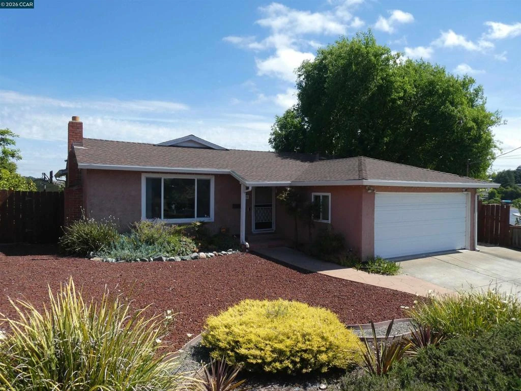 A great Tara Hills Rancher with Panoramic views of the Bay and the Hills of Pinole. This home has a huge lot with beautiful landscape and hardscape featuring fruit trees, flagstone and stamped concrete patio and walkways. Bonus features are the covered patio and the large detached viewing deck. Potential for off street and RV parking. The ranch style floor plan features large living room and fireplace, beautiful hardwood floors throughout. Newer stucco exterior and dual pane vinyl windows. 2 remodeled and updated baths. A primary suite with French doors that lead to the beautiful patio and zen garden.