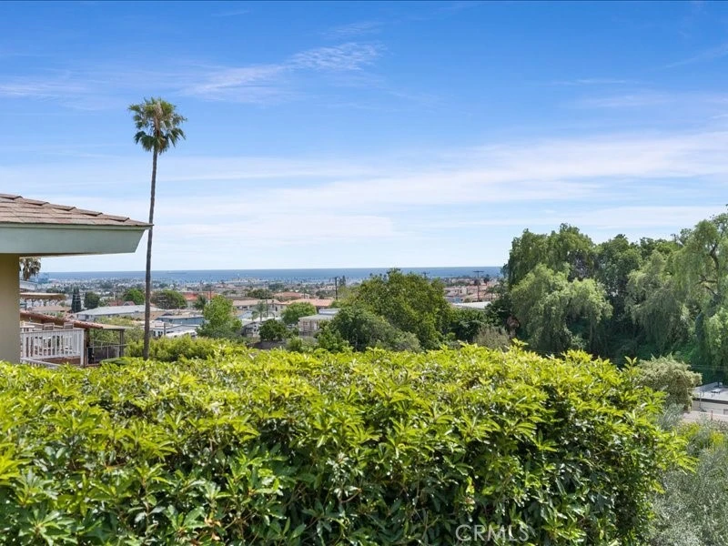 Great view home! Move-in Ready! The large deck adjacent to the living room provides outstanding harbor, coastline, ocean and mountains views, ideal for entertaining. Great views from the living room and primary bedroom! Located on a quiet one way street in the Holy Trinity neighborhood, this property sits on a terraced canyon lot with mature trees and greenery. Bright and open concept living , dining and kitchen area. The kitchen features granite counters and a large island. The living room and upstairs bedroom feature newly refinished hardwood oak floors and both the interior and all exterior wood trim were just painted. Additionally, there's a large den/family room that opens straight onto the private patio deck and landscaped rear yard, where you'll find a spacious jacuzzi hot tub perfect for unwinding. The den could easily be a third bedroom or a large home office area. The property features dual glazed windows, central air conditioning and heating, a retractable awing for the large deck, new sectional garage door, updated vinyl flooring downstairs, a spacious second bedroom, large closets and a large basement storage area.