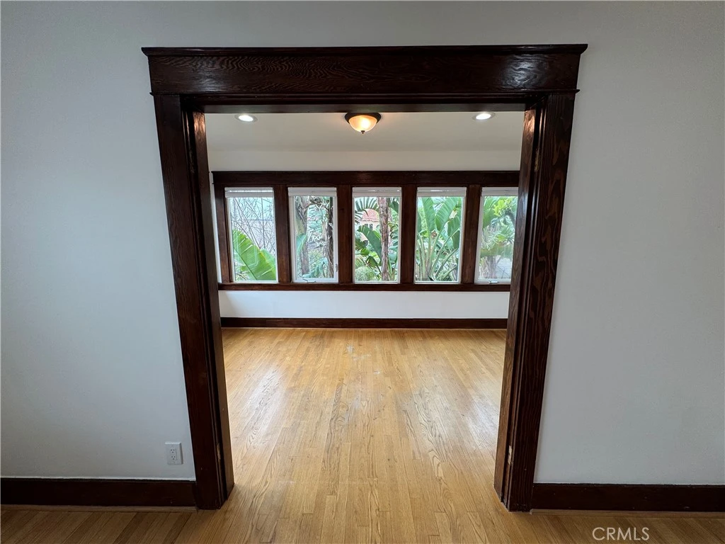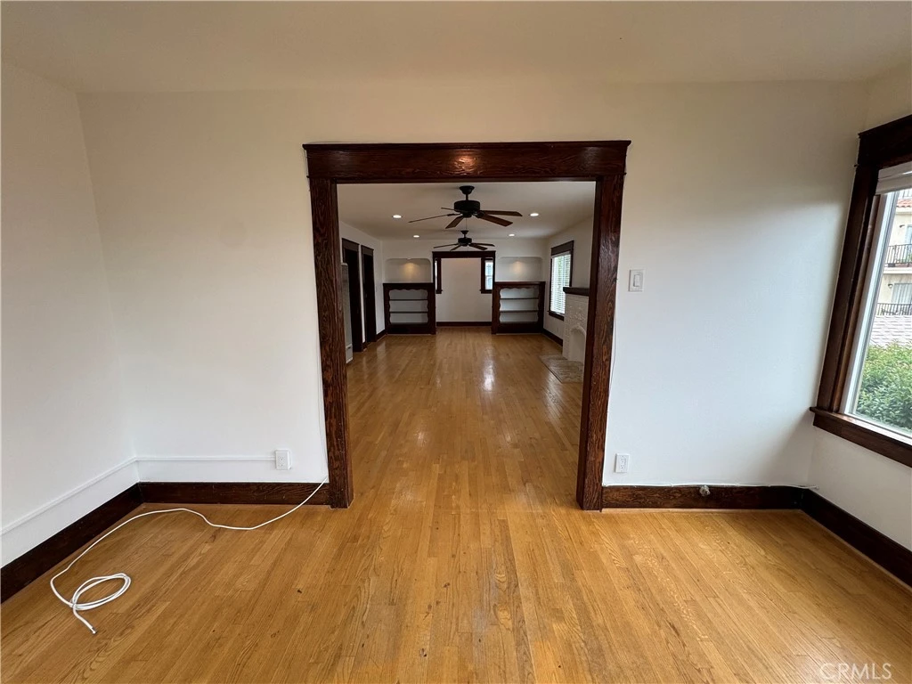 Upper-level residence with timeless character near Cabrillo Beach, offering approximately 1,000 square feet of light-filled living. This spacious 1-bedroom, 1-bath apartment features beautiful hardwood floors and rich Craftsman detailing throughout, including thick wood trim, built-ins, and original architectural charm. The expansive living room is anchored by a decorative fireplace and opens to a stunning window-lined sunroom—ideal as a home office, reading lounge, or creative space. On the opposite side of the living room, a unique “entertainer’s closet” adds both charm and functionality, offering flexible storage or serving space. The kitchen has been thoughtfully updated with granite countertops, stainless steel appliances, and a cozy breakfast nook, along with a separate laundry room for added convenience. All appliances are included. Side parking available on a gravel pad. Tenant pays trash and electricity. No smoking on property or in unit.