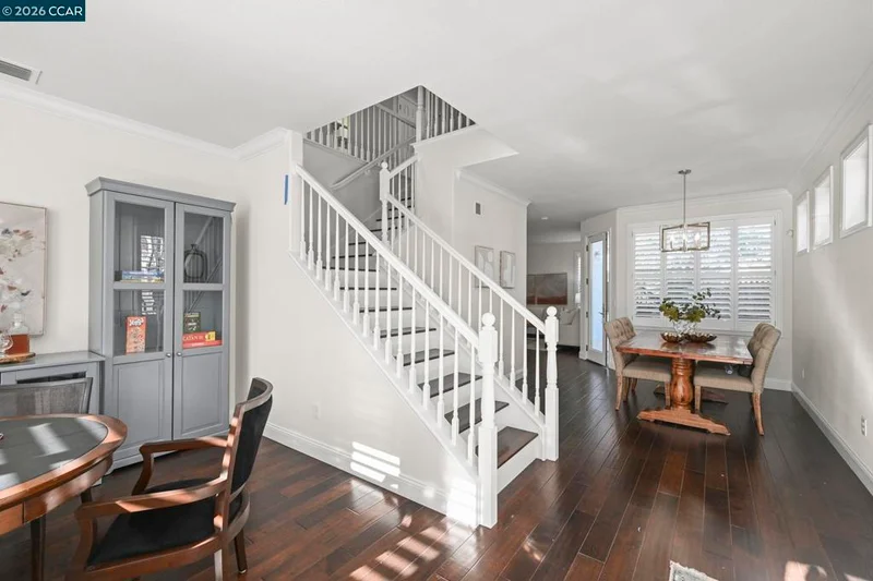 Must see, beautifully appointed corner-lot residence at The Orchards offers 3 bedrooms plus a versatile loft (4th bedroom option) and 2.5 baths, showcasing a spacious open-concept floor plan designed for both comfort and style. The HOA maintains the front yard landscaping, providing a polished exterior with low-maintenance living. The home features numerous upgrades throughout, including quartz kitchen countertops, stainless steel appliances, engineered hardwood floors, a refaced fireplace, vinyl shutters and a fresh coat of interior paint. The kitchen flows effortlessly into the family room, enhanced by a center island, engineered hardwood flooring, and refined finishes that create a warm yet sophisticated ambiance. The spacious primary suite serves as a true retreat, featuring dual vanities, a sunken soaking tub, a separate stall shower, and a generous walk-in closet. Ideally located near top-rated schools within the SRVUSD, this home also offers convenient access to freeways, shopping, and dining. Enjoy close proximity to the vibrant San Ramon City Center, with its upscale restaurants, boutique shops, and community amenities—perfectly blending comfort, convenience, and lifestyle.