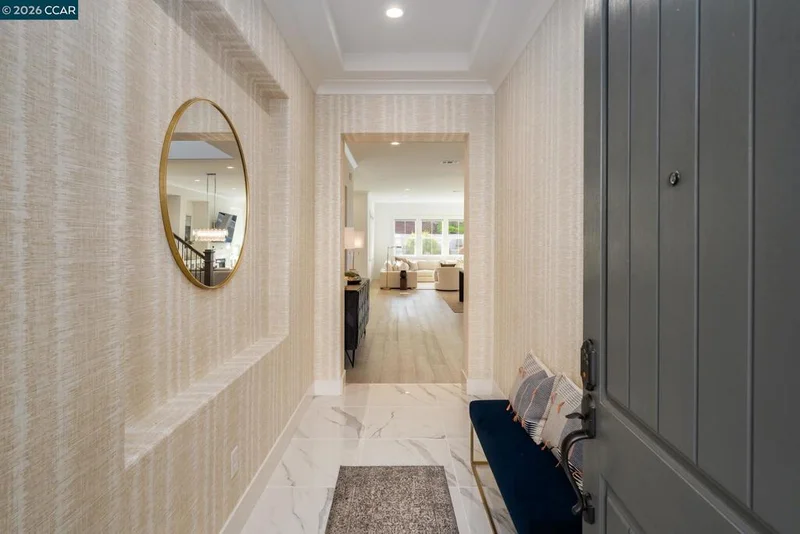 Situated on one of the largest lots in the Carmelita community of Gale Ranch, this east-facing Torino floorplan backs to open space & offers nearly $600K in upgrades. The home features premium finishes including hardwood flooring, smooth wall finishes & designer details curated with Diablo Design Group. The chef’s kitchen showcases quartzite countertops w/ subway tile backsplash, an extended island, SS appliances & extensive custom cabinetry by Precision Cabinets w/ flush inset construction – continuing through the great room, mudroom, laundry & primary bath, along w/ custom closets & window treatments throughout. A downstairs bedroom suite offers flexibility for guests or multigenerational living. Upstairs includes a versatile loft with the option of converting into a 5th bedroom & a primary suite opening to a covered patio w/ hillside views. The California Room features sliding doors, a fireplace & TV. The professionally landscaped backyard by Black Diamond Landscaping includes a custom Hawkins pool/spa with Baja shelf, raised beam with three fountains & automatic safety cover. Additional highlights include owned solar w/ battery, tankless water heater, whole-home water filtration system & EV charger. Ideally located near top-rated schools, parks & Elderberry hiking trails.