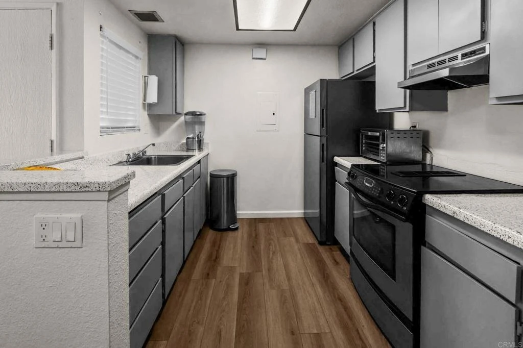 Welcome to this elegantly upgraded one-bedroom, one-bathroom corner unit, located on the upper floor for enhanced privacy. The residence features modern stainless steel appliances, two community swimming pools, and secure gated entry. For added convenience, it includes an assigned carport and in-unit washer/dryer. With easy access to nearby freeways and the trolley, this home perfectly combines comfort and accessibility.