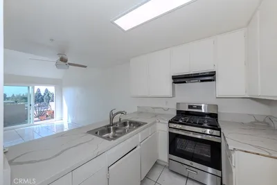 Great condo completely remodeled with beautiful City Views and TWO DESIGNATED PARKING SPACES; this unique unit has an extra-large bedroom which has been split into two separate rooms; 1 large bathroom and plenty of cabinets throughout; this unit offers panoramic city views from the living room and bedroom; located in the midst of the hip and trendy Historic Santa Ana Downtown area; walk to all the pubs, restaurants; museums and trendy downtown shops; property is located down the street from the new multimillion-dollar Rafferty Building; great unit in great community has tot lot, pool and clubhouse; HOA pays for water, trash, sewer and community maintenance and master insurance policy;