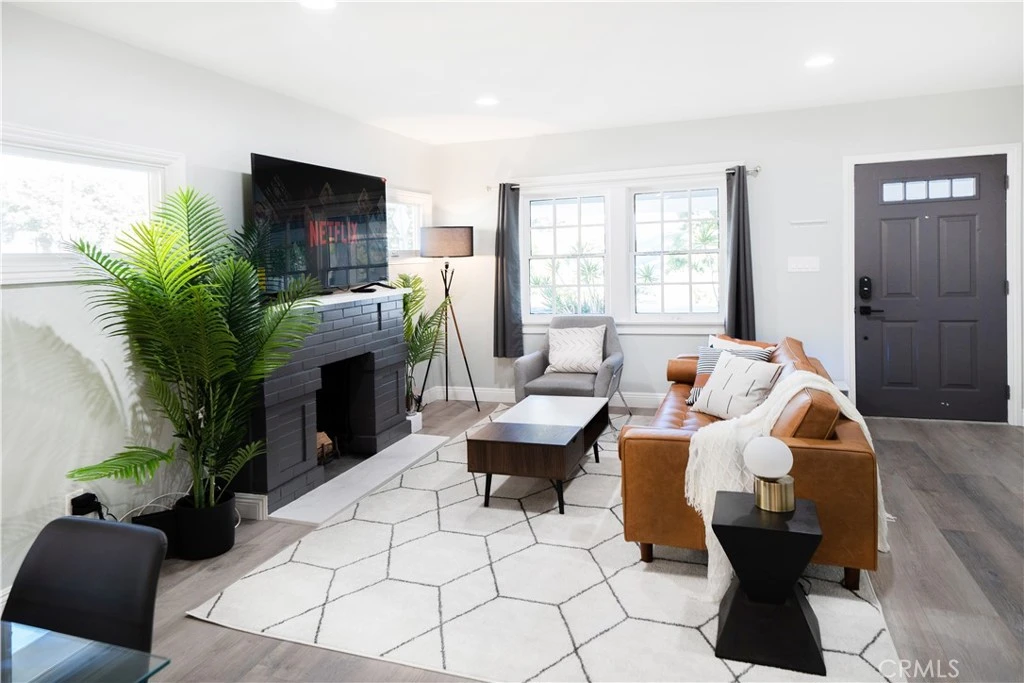 This beautiful Craftsman-style single story house is located in Santa Ana's historic French Park district and is registered as the historic Liggett-Wallace home, qualifying for huge Mills Act tax savings year after year. Relax on the spacious front porch or in the large back yard, which is perfect for outdoor entertaining. Enter the turnkey, open-concept floor plan with living room that showcases a wood-burning, brick fireplace. Enjoy family and friends in dining and kitchen areas with a large island, spacious cabinets, and modern appliances. The entire house has been upgraded with wood windows, luxury vinyl flooring, rewired electrical, central air-conditioning, and new bathroom finishes including double sinks, large tiled shower, and stand-alone tub. The three-bedroom layout includes a master with upgraded en-suite bath, a dedicated laundry room, and a small basement that can be used as storage. Good house "feng-shui" with South-facing front and East-facing side. Gated, long driveway leads to a 2 car garage with additional turn-around and parking space. Convenient location with easy access to Freeways 5, 55, 57, and 22; also walking distance to Santa Ana Metrolink station. Property was successfully used for midterm rental, generating steady cash flow on FurnishedFinder.com; option to purchase all staged items/furnishing/amenities for turnkey income property.