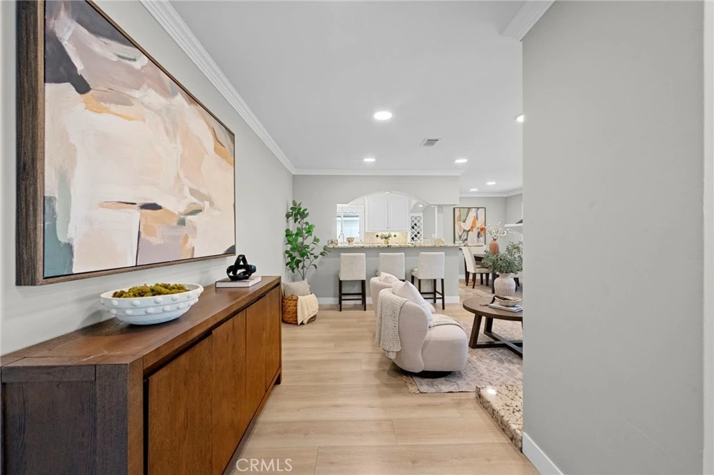 Nestled in the heart of the charming and historic Santa Clara Manor neighborhood, this beautifully updated home offers a rare blend of character, comfort, and timeless appeal. Originally built in 1951 by Murry Development, this residence began life as Plan C and was expanded by its original owner, Lee Hasenjaeger, in both 1954 & 1958. Set along a tree-lined street known for its pride of ownership and welcoming atmosphere, this home is ready to begin its next chapter. The current owners—a well-known chef and his wife—have lovingly enhanced the home with a stunning kitchen, updated bathrooms, new flooring, new windows, new plumbing and hvac, Tesla car charger, new stamped concrete and many more thoughtful upgrades. A winding pathway leads you to a cozy covered porch, setting the tone for what awaits inside. Step into a bright, open-concept living space featuring wide plank wood-grain flooring, a fire-lit living room, and seamless flow into the dining area and kitchen—perfect for both everyday living and entertaining. Plantation shutters and crown molding add a touch of classic elegance throughout. The kitchen is both beautiful and functional, offering abundant counter space and storage. Highlights include a Viking 4-burner cooktop with griddle and downdraft vent, plus included stainless steel refrigerator, washer, and dryer. Bathed in morning light, the kitchen connects to a convenient mudroom designed to keep everything organized. Additional spaces include a skylit office with built-in storage and a safe, and a comfortable TV room overlooking the backyard. The primary bedroom features mirrored closets with custom organization and direct access to a relaxing spa. Two additional bedrooms sit along the side of the home. Outdoors, enjoy a private backyard retreat complete with a covered pergola and built-in Viking BBQ—ideal for gatherings year-round. A large Tuff Shed tucked behind the garage offers flexible space. The garage includes extensive built-in storage, even showcasing original metal kitchen cabinetry for a touch of vintage charm. Set in the highly walkable Park Santiago neighborhood, the home is just moments from the renovated Santiago Park. Here you'll find a wide array of amenities including tennis and pickle ball courts, lawn bowling, a baseball diamond, bike trails, fitness paths, and play areas. Freshly painted and thoughtfully updated, this home combines historic charm with modern convenience in one of the area’s most beloved neighborhoods.