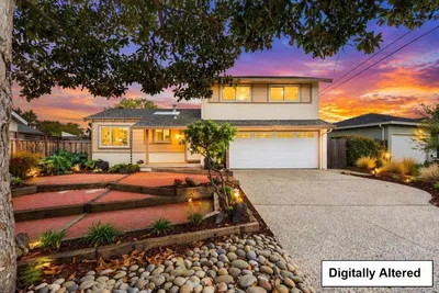 Welcome to this gorgeous east-facing 3-bed, 3-bath (two suites) single-family home in Santa Clara, set on a 6,944 sqft lot. The home welcomes you with a beautiful front yard and porch. Inside, an open floor plan with modern finishes features a large living room with a stylish fireplace and recessed lighting. The gourmet kitchen offers a large island with quartz countertop, sink, and breakfast bar, accented by a modern bar light above, plus stainless steel appliances, ample cabinetry, and a skylight. The dining area connects seamlessly and features a beautiful pendant light. A large sliding door leads to the backyard, creating ideal indoor-outdoor living. The spacious primary suite includes a walk-in closet, bright windows, and a sliding door to the backyard. Its en-suite bath features a double-vanity sink, floating cabinetry, stall shower, and soaking tub with a beautiful ceiling light and large view window. Another suite at the front offers an updated stall shower. Down the hallway is an additional bedroom and a hallway bathroom with stall shower. Great schools Laurelwood, basis,Stratford all nearby. Just 5 minutes to Apple Park with easy access to Lawrence Expy and Hwy 280 for a short commute to major tech companies. Do not miss this great one!