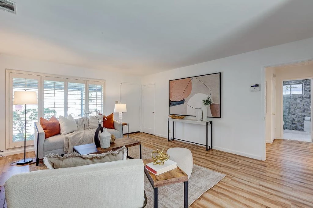 Bright and charming single-story home in Santa Clara featuring 3 bedrooms and 1 bathroom. This inviting residence offers central heating and air conditioning, with laminate flooring throughout. The living room boasts a cozy wood-burning fireplace and large dual-pane windows with wooden blinds that fill the space with natural light. The dining area includes a ceiling fan, a picturesque window, and direct access to the backyard. The updated bathroom features a walk-in tiled shower with rain showerhead, multifunction hand shower, and a full-size built-in bench, along with an updated vanity. Ceiling fans are installed in all bedrooms. Enjoy a relaxing, low-maintenance backyard with a covered patio and mature trees perfect for entertaining family and friends. Conveniently located near shopping, schools, and a wide range of local amenities.