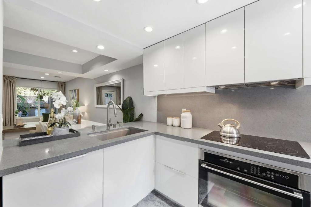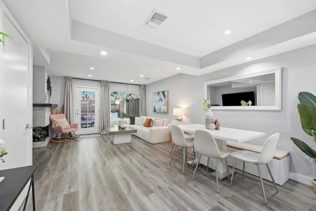Tastefully updated 2BD/2.5BA townhome offering thoughtfully designed living space in a quiet, gated community. The spacious living room flows seamlessly into the dining area and extends to the private backyard patio, creating an ideal open-concept floor plan perfect for everyday living and entertaining. Surrounded by lush greenery, the backyard provides a peaceful and private outdoor retreat. A convenient powder room with washer/dryer adds functionality. The modern kitchen features glossy white MDF cabinetry, quartz countertops, and stainless steel appliances, delivering a clean and contemporary design. Upstairs, two spacious primary suites with updated en-suite bathrooms and upgraded closet systems offer comfort, privacy, and efficient storage. Additional highlights include recessed LED lighting and upgraded double-pane windows for comfort and energy efficiency. Includes two assigned underground parking spaces equipped with a standard 220V outlet for EV charging. Enjoy amenities including a pool, spa, and greenbelt with gated security. Conveniently located near major tech employers, shopping, dining, and key commute routes, with close proximity to Santa Clara Station and Santa Clara University offering the perfect balance of accessibility and a quiet, tucked-away setting.