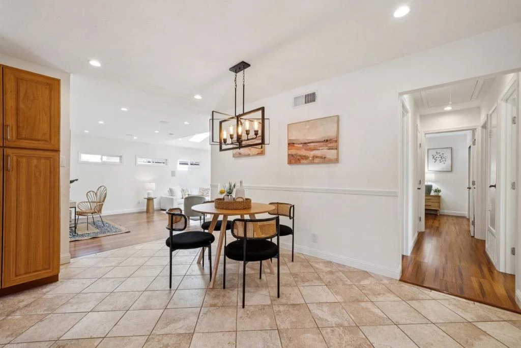 Welcome to 2530 Forbes Drive, a beautifully updated 3-bedroom, 2-bathroom home in Santa Clara. Featuring 1,648 sq ft of living space on a 6,440 sq ft lot, this property offers modern comfort and style with fresh interior paint, luxury vinyl plank flooring, recessed lighting, and a Nest thermostat. Gourmet kitchen boasts S/S appliances: Bosch gas stove, Whirlpool French door refrigerator, GE microwave, granite countertops, designer backsplash, double sink, and built-in wine rack. The spacious living area offers a modern tiled fireplace, while the extra-large family room is highlighted by vaulted ceilings, skylights, overhead fan, Doors leading to the yard, and abundant natural light. The primary suite includes a sleek bathroom with a tiled shower stall, vanity with bowl sink, and modern finishes. The updated hall bathroom features a modern vanity, tile flooring, and a tiled shower over tub. Additional bedrooms include recessed lights, overhead fans, and blinds. Outdoor living is made easy with a paved patio and low-maintenance AstroTurf yard, plus Space for Potential ADU. Conveniently located near major highways, parks, shopping, dining, Santa Clara University, and top employers like Apple and Nvidia, this move-in ready home combines comfort, style, and prime Silicon Valley living