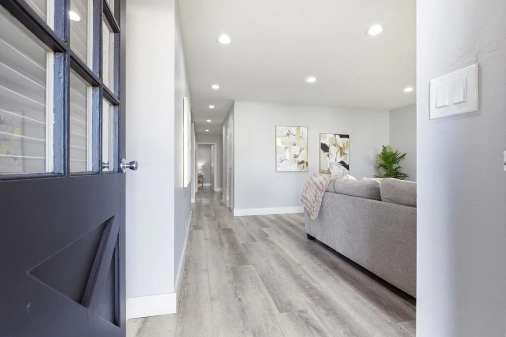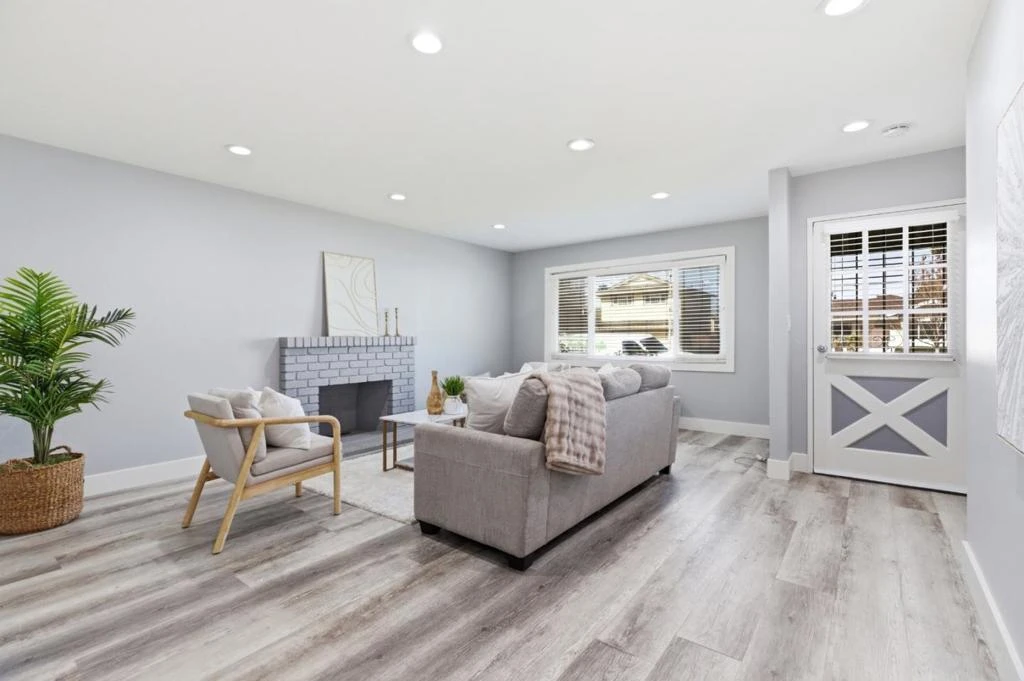 Welcome to 2898 Barkley Avenue a beautifully remodeled 3-bedroom, 2-bath home showcasing modern finishes and a clean, contemporary aesthetic throughout. The home greets you with a bright, open living space featuring wide-plank flooring, recessed lighting, soft gray tones, and a stylish painted brick fireplace that creates a warm yet modern focal point. Large windows invite in abundant natural light, enhancing the airy feel of the space. The bathrooms have been thoughtfully upgraded with sleek, designer touches. One features a striking glass-enclosed walk-in shower with custom tile work and a built-in niche, paired with a modern vanity and illuminated mirror for a high-end spa-like feel. The second bath continues the contemporary theme with elegant tile surround, updated fixtures, and a clean, sophisticated design. Throughout the home, youll find fresh interior paint, updated lighting, and quality finishes that create a cohesive and move-in-ready experience. The attached two-car garage adds everyday convenience, brand new water heater while the backyard space offers room to relax or entertain. Located in a desirable Santa Clara neighborhood close to top-rated schools, shopping, dining, and major commute routes, this home combines modern style, functionality, and prime location.