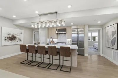 FULLY TURNKEY and ALL INCLUDED IN THE SALE, this private corner-lot former model home showcases over $200K in upgrades, designer-selected furniture, décor, artwork, and an OWNED 9-panel solar system. Built by Toll Brothers, this exceptional residence offers upscale design, quality construction, and rare privacy with no direct neighbors on three sides. The sunlit main level features an open-concept layout that seamlessly connects the designer kitchen, inviting living room, built-in office nook, and spacious dining area with access to a covered balcony. High ceilings, designer decorative lighting, hardwood floors, elegant quartz slab countertops, white brick tile backsplash, slate-panel cabinetry, a massive island, KitchenAid range, and built-in refrigerator create a refined modern living experience. Both spacious suites offer modern en-suite baths, including a luxurious primary suite with double vanity, walk-in shower, and walk-in closet. Additional highlights include a powder room, attached 2-car garage, laundry area, tankless water heater, and Nest controls. Enjoy low Santa Clara utilities and a prime location just minutes from Costco, Whole Foods, Lawrence Caltrain, major tech campuses including NVIDIA, Apple, Google, and Meta, with easy freeway access for effortless commuting.