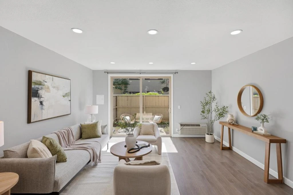 Affordable End Unit 2-Story Townhouse located in the heart of Silicon Valley. No neighbors upstairs and downstairs; two assigned carports and abundant parking space for visitors. Newly updated with fresh paint and modern recessed lighting. Downstairs, open floor plan between kitchen and the spacious living room, with a large sliding glass door leading to a private yard, offering an outdoor space for relaxing and gardening. Upstairs, enjoy two general-size bedrooms with large closets. This community offers pools, spa, saunas, club rooms, evening security & children's play area, etc. HOA covers water and garbage and enjoy the benefit of Santa Claras low-cost utilities. Walking distance to Central Park, Santa Clara Public Library; Close to Nvidia, Apple, and many high-tech companies. Great starter home for both first-time buyers and savvy investors. Don't miss out on this move-in-ready townhouse in a prime location!
