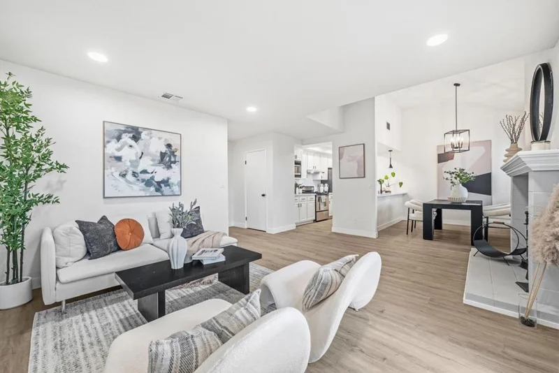 Stunning End-Unit with Private entrance in the prestigious Miramar Terrace gated community! Fully remodeled in 2021, this bright and spacious home features an open living/dining area with high ceilings and tons of natural light, leading to a large private balcony. The remodeled kitchen boasts quartz countertops, beautiful backsplash, white shaker cabinets, and SS appliances. Bathrooms are upgraded with sleek fixtures, quartz counters, and designer tile. The Expansive master suite offers vaulted ceiling, dual closets, and dual-sink vanity. Second bedroom includes walk-in closet. Additional highlights include recessed lighting, plantation shutters, central A/C, in-unit laundry, and extra storage unit. Two parking spaces plus ample guest parking. HOA covers water, gated entry, security patrols, garbage, gas, and amenities including pool, spa, clubhouse, sauna, and gym. Ideally located in the heart of Santa Clara near Santana Row, Valley Fair, Nob Hill, Ponderosa/Eklund parks, restaurants, and major tech companies.
