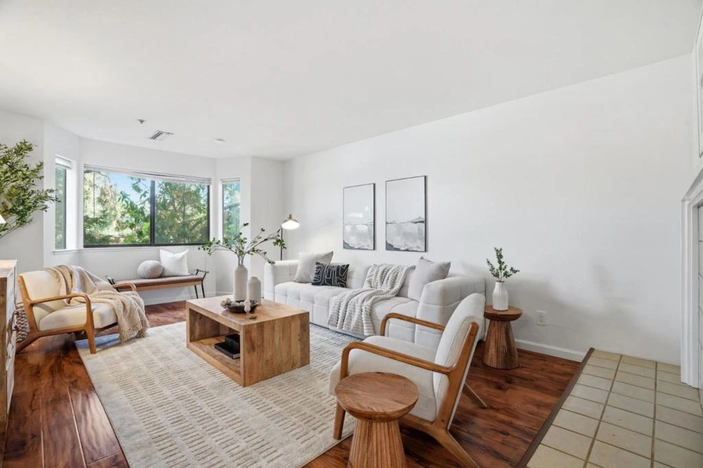 This 1360 sqft unit is situated in the gated Miramar Terrace community and has been beautifully maintained with modern updates. This spacious unit features laminate flooring throughout, a remodeled kitchen with stainless steel appliances and a breakfast bar, and a bright living area with a cozy wood-burning fireplace that opens to a private balcony. The primary suite includes mirrored closet doors and dual sinks, while the second bedroom offers an abundance of natural light to come in through the window. Additional highlights include in-unit laundry, recently upgraded HVAC, and an additional storage unit. Enjoy resort-style amenities including pool, spa, sauna, gym, clubhouse, and secure covered parking. Ideally located in the heart of Silicon Valley with easy access to major highways, tech campuses, shopping, dining, and entertainment. Don't miss this opportunity to enjoy refined living in one of Santa Clara's most convenience and desirable communities!