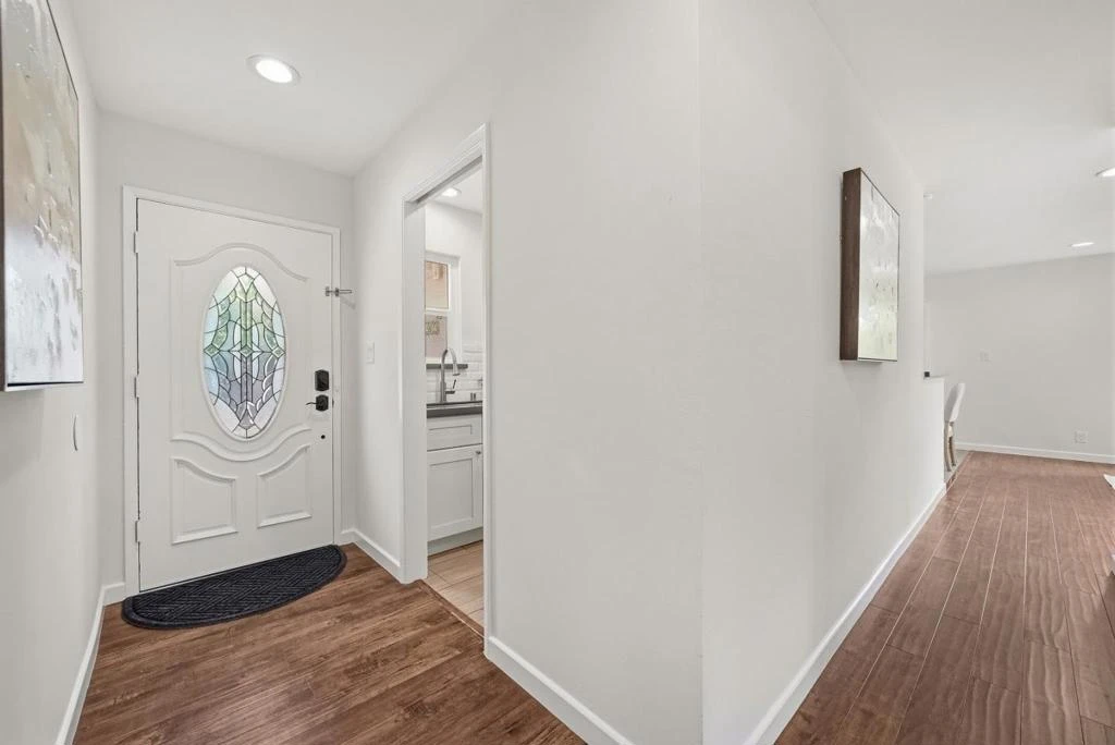 Welcome to this charming single-family home with 3 beds and 2 baths on an 8,310 sqft lot, served by top-rated Cupertino High. The home greets you with flowers in the front yard flower bed. Inside, a modern kitchen sits to the left with quartz countertops, tile backsplash, stainless steel appliances, and ample cabinetry, flowing into the dining area. The connected living room features a ceiling light, recessed lighting, and large windows overlooking the backyard. A sliding door leads to an enclosed sunroom, ideal as an office or activity room, plus a shaded outdoor space for relaxation. The primary suite is at the end of the hallway with an en-suite bath featuring quartz countertop and a stall shower. Two additional bedrooms serve family and guests, and the hallway bathroom offers a quartz countertop and shower over tub. The large private backyard features a green lawn and many surrounding fruit trees, perfect for outdoor activities. Additional highlights include an attached two-car garage with washer and dryer. Close to Cupertino, near restaurants, grocery stores, Central Park, and shopping at Valley Fair. Just 8 minutes to Apple Park with easy access to Lawrence Expressway and Highway 280 for an easy commute to major tech companies. Do not miss this great opportunity!