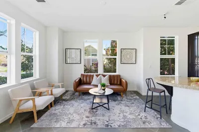 Welcome to this charming home located in the vibrant city of Santa Clara. This spacious residence offers 1,590 sq ft of comfortable living space, featuring three bedrooms and three full bathrooms. Positioned within the Santa Clara Unified School District, it is a practical choice for families. The kitchen is a chef's delight, boasting a range of modern appliances including a gas cooktop, built-in oven, microwave, and refrigerator, complemented by an island and a convenient 220-volt outlet. The kitchen seamlessly flows into the family room, creating an inviting atmosphere for gatherings. Enjoy meals in the dining area, which features a breakfast bar and additional dining space in the living room. The home is equipped with central AC and features diverse flooring options like carpet, slate, tile, and wood. Relax by the fireplace or enjoy the high ceilings and walk-in closet, adding to the homes appeal. The laundry area is conveniently located in the utility room and includes a washer and dryer. A community pool and a two-car garage round out the amenities.