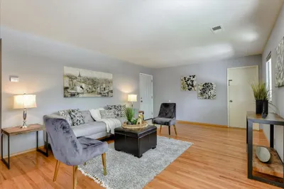 Santa Clara's highly sought after desirable Mariposa Gardens neighborhood, served by in-demand Sutter Elementary. This home is bathed in natural light and showcases beautifully refinished hardwood floors, elegant crown molding and a well-designed floor plan ideal for everyday living and entertaining. The gourmet kitchen features a central island, gas stove, Corian countertops, pantry and space for a refrigerator plus a separate freezer or wine refrigerator. The expansive family room is a warm, inviting space with a cozy free standing wood fireplace and wall-to-wall built in shelving. The private primary suite, located at the rear of the home, is a true retreat with three spacious custom closets, drawers, mirrored doors, double sink vanity, private toilet room and excellent storage. A secondary bedroom with a Murphy bed provides flexible space for an office/guests. Recent updates include fresh interior paint, new toilets & new vinyl plank flooring. Additional features include ceiling fans, central vacuum, wall insulation, copper piping, low maintenance backyard with deck, mature fruit trees, drip system and storage shed. Just steps from Mary Gomez Park & close to Central Park Library, Stans Donuts, shopping, major commute routes & top tech campuses. Enjoy Santa Clara low utilities