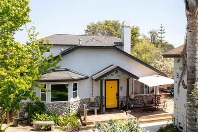 Set across from a peaceful arroyo on Santa Cruz's coveted Upper Westside, this beautifully curated 3BD | 2.5BA residence blends architectural volume with refined designer style and indoor-outdoor living. Thoughtfully reimagined by Stripe Designs, the home features soaring ceilings, abundant natural light, and warm LVP flooring throughout. Updated windows and plantation shutters enhance comfort and privacy. The designer kitchen makes a bold statement with a Nostalgie range, quartzite counters extending into the backsplash and cabinetry, brass pulls, and a bar area with 52-bottle wine fridge. A welcoming hexagon tile entry and bespoke living room cabinetry with custom floating shelves add architectural interest and function. The private primary suite offers custom sconces, dual walk-in closets, a spa-inspired bath with designer tilework and a sculptural concrete vessel sink. Two additional bedrooms and full bath on the main level, including one styled as an office with built-ins. A chic powder room upstairs and a laundry room off the garage, add convenience. Outside, a wraparound flagstone patio with outdoor kitchen, BBQ, multiple seating areas, and a teak Japanese soaking tub creates an ideal entertaining retreat. Moments to beaches, trails, wineries, and Westside favorites.