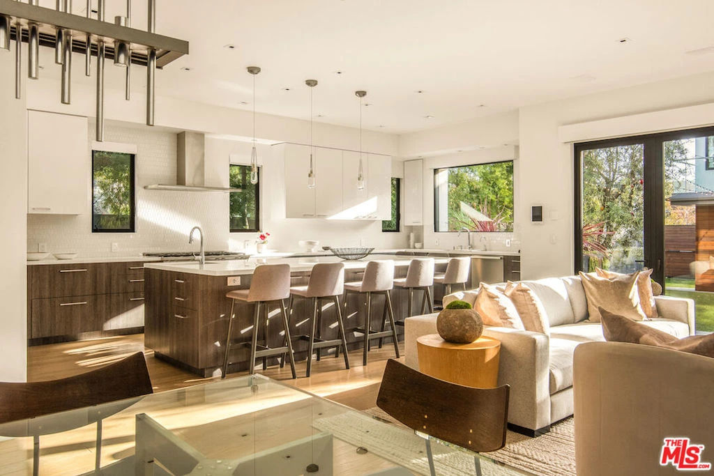 Situated on a quiet tree-lined street, in the heart of mid-city Santa Monica, this custom, two-story modern smart-home with guest house is fully amenitized. The main level features a guest suite, nicely appointed laundry room, and formal living room. The family room seamlessly connects to a Miele-swathed kitchen with ample storage, counter space, seating, and out to a private, flat grassy pad through Fleetwood glass doors. The second level consists of two generously sized guest suites, along with a primary bedroom equipped with a giant walk-in closet, steam shower, jet tub, and blackout shades. The ~500 SF guest-flat sits atop the 2-car garage. A few more steps up lead to a rooftop deck with panoramic views. Amenities include: Lutron lighting, Savant A/V control, dual-zone HVAC, wall-mounted ipads, automatic shades, 26-panel solar power, a carport, WiFi-enabled security cameras, gate-access, and locks. All this, only moments from Colorado Center Park, the Water Gardens, and the Beach.