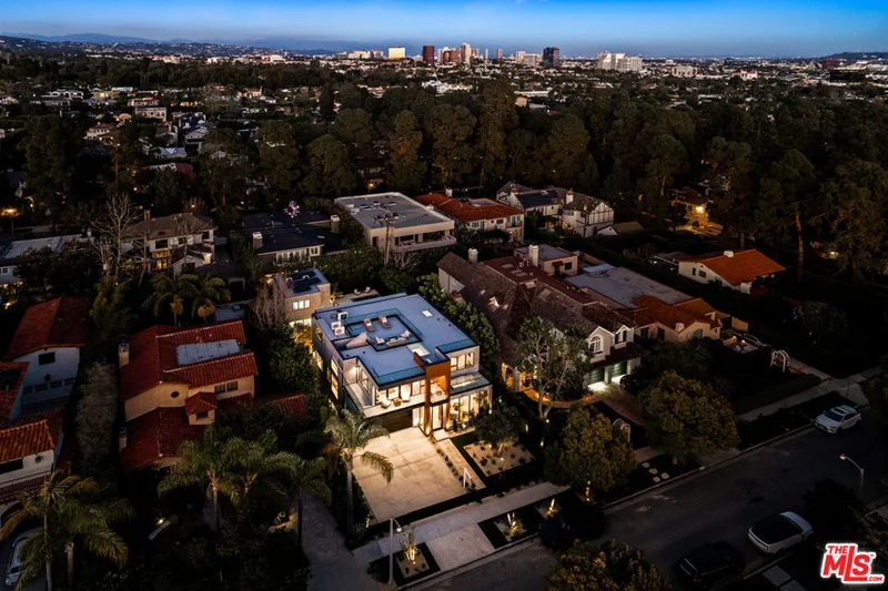 Newly completed following an extensive six-month renovation and offered for the first time, this North of Montana residence pairs disciplined modern architecture with a fully realized amenity program and exceptional indooroutdoor flow. The home spans three thoughtfully planned levels with private elevator access, delivering scale, privacy, and seamless functionality for both daily living and large-format entertaining. The main residence includes five bedrooms and seven bathrooms with expansive open-concept living and dining areas framed by oversized glazing and folding glass walls. Light moves through the home from multiple exposures, enhanced by clean ceiling lines, skylights, and wide-plank flooring that carries a consistent, warm modern palette throughout. At the center, a double-island chef's kitchen is finished in Taj Mahal quartzite with top-tier appliances and integrated storage, opening directly to the primary living spaces and exterior terraces for effortless hosting. Interiors are defined by refined material continuity and architectural restraint, including four limestone fireplaces, a newly executed primary bath, a custom-designed closet, and a redesigned powder room. Large picture windows capture garden views and mature greenery with beautiful olive trees, creating a calm, gallery-like backdrop across living areas and bedrooms. A comprehensive lower level includes a private movie theater, fully equipped gym, wine cellar and meditation room forming a true at-home retreat across multiple levels. The exterior is designed as a direct extension of the interior program: folding glass doors open to landscaped grounds with a pool and spa, an eight-jet water feature, integrated LED lighting, an outdoor fireplace, multiple lounge zones, and grassy play areas. Newly installed landscaping and mature olive trees provide structure and privacy, while the overall plan supports both relaxed daily use and entertaining at scale. Additional highlights include an expansive rooftop deck with ocean views and a 1,050-square-foot two-story ADU complete with two bedrooms, one and a half bathrooms, with living room, kitchen, and in-unit washer/dryer ideal for extended stays, guests, staff, or flexible work-from-home living. A newly completed, design-forward offering in one Santa Monica's most established and sought-after neighborhood.