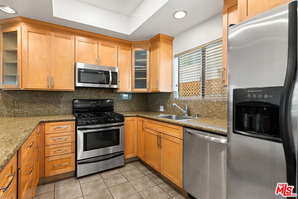 In a prime Santa Monica setting, this updated two-bedroom, two-and-a-half-bath townhouse spans two levels of thoughtfully designed living. Hardwood floors ground the expansive main level, where soaring ceilings create volume and light in a generous living area anchored by a sleek central fireplace. The adjoining kitchen is finished with granite counters and a full suite of stainless-steel appliances, including a refrigerator, range, dishwasher, and microwave. A bar-top counter and casual breakfast nook extend seamlessly to a petite outdoor patio, offering a natural flow for both daily routines and relaxed gatherings. A full-sized washer and dryer add convenience on the main floor. Upstairs, both bedrooms feature walk-in closets and window shutters, while the spacious primary retreat impresses with vaulted ceilings and an oversized en-suite bath complete with a walk-in shower. Two parking spaces accompany the residence, enhancing everyday ease. Just moments from the beach, Downtown Santa Monica, Douglas Park, Lincoln Middle School, and a variety of neighborhood amenities, this townhouse offers a balanced blend of comfort, function, and location.