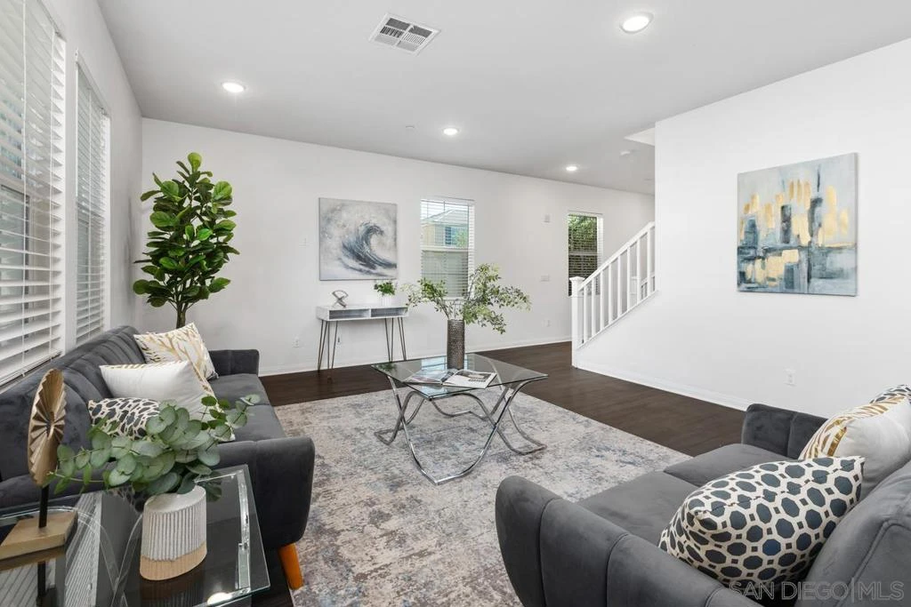 Welcome to this beautiful home in Santee's Prospect Fields community. Move-in ready with fresh new paint and new carpet. 3 bedrooms with an additional loft/office, and over 2,100 square feet of living space. This home offers luxury and convenience. Highlights include an owned solar system, gourmet kitchen with quarts countertops and island. Community amenities include a playground and sports court, with low HOA fees, no Mello Roos and easy access to shopping and freeways. Don't miss this opportunity to own a home in Santee!