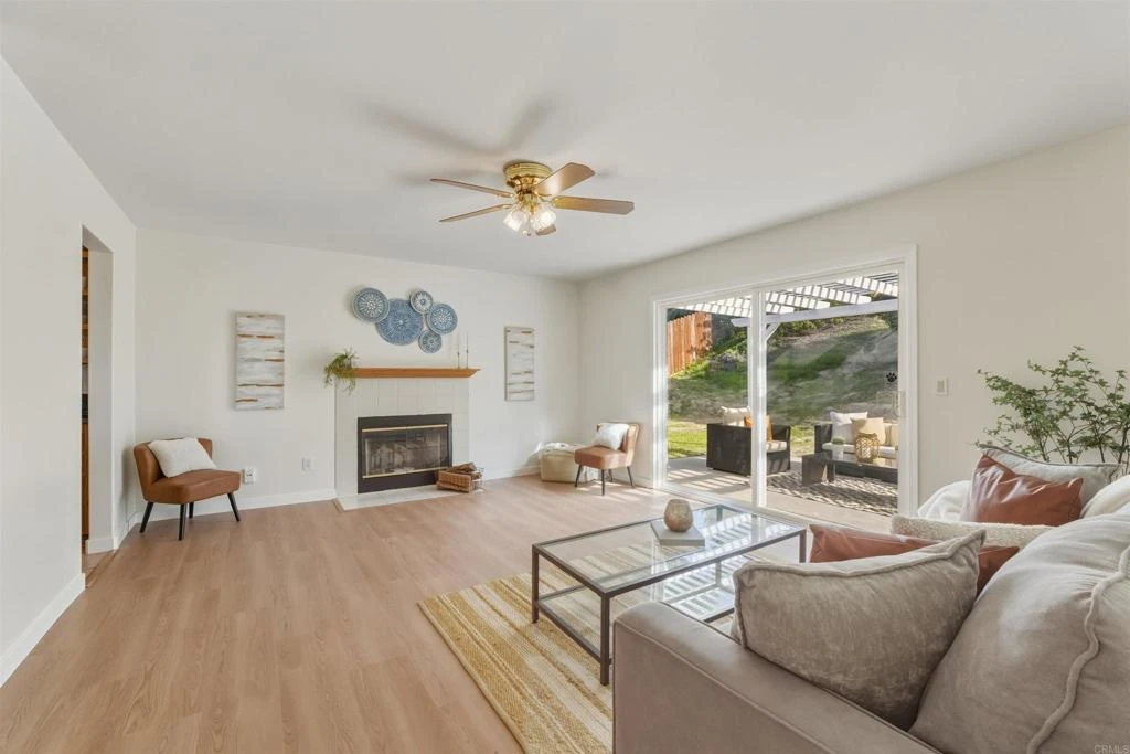 Charming 4-bedroom, single-level home located in the desirable Carlton Hills neighborhood! This well-maintained property features fresh interior paint and new vinyl flooring throughout. The fully fenced yard offers attractive hardscape and a large private backyard with mature trees, including a grapefruit tree—perfect for relaxing or entertaining. Inside, you’ll find custom oak cabinetry throughout the home, a spacious kitchen with granite countertops and a gas cooktop, and a cozy fireplace in the living room. Dual-pane windows provide energy efficiency and natural light. The primary bathroom was remodeled approximately 1.5 years ago. Additional highlights include a 2-car garage and a functional, open single-level layout. Conveniently located near shopping, dining, and everyday amenities, with easy access to major freeways. Close to local schools, parks, and recreation, making this an ideal place to call home.