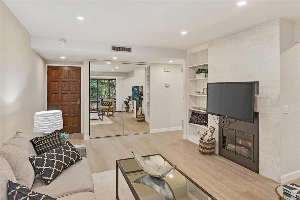 Extensively updated, upstairs condo steps from vibrant Saratoga Village. Award-winning Saratoga schools! Spacious rooms. Many recent improvements: newly added in-unit washer and dryer, new vinyl plank flooring and recessed lights throughout, kitchen with new sink and quartz countertops atop freshly painted cabinets, and beautifully updated bathrooms with new vanities, counters, sinks, hardware, mirrors, and lighting. New electrical subpanel, too! Flip a switch to enjoy the cozy living room fireplace. The living room and both dining spaces overlook the lush greenbelt with views of tranquil Saratoga Creek. The formal dining area and living room open to a large private balcony. The Gatehouse gated community amenities include sparkling pool, hot tub, clubhouse, game room, bike racks, and landscaped greenbelts with water features. Ideal location close to Wildwood Park, shopping, dining, wine tasting, art and entertainment, and easy access to commuter routes, such as Hwy 85. Most scenic views in the Gatehouse community!