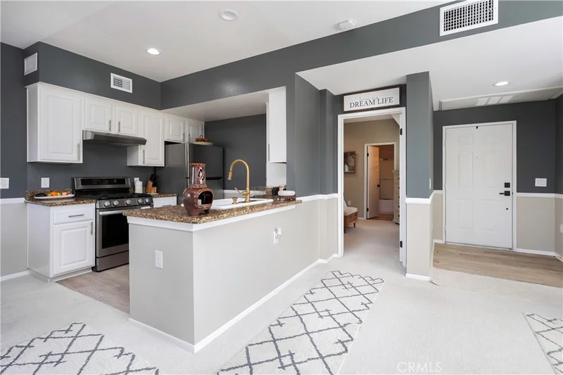Welcome to elevated, resort-style living in the heart of Saugus. Nestled inside the highly desirable Bordeaux gated community, this beautifully upgraded residence blends comfort, style, and everyday convenience. Step inside to rich laminate floors that flow seamlessly, creating a warm and modern ambiance. Open-concept living space, which connects effortlessly to a thoughtfully designed kitchen featuring sleek stainless steel appliances, generous prep space—perfect for both daily living and entertaining guests with ease. The primary bedroom is highlighted by a striking board and batten accent wall arranged in a modern grid pattern, adding depth, texture, and architectural character to the space. This elegant design detail continues into the bathroom, where the matching touch creates a cohesive and stylish feel throughout the suite. Step out onto your private balcony and take in peaceful hillside views while enjoying the added convenience of a brand-new in-unit washer and dryer. Residents enjoy exclusive access to resort-inspired amenities, including a sparkling pool, relaxing spa, and fully equipped fitness center—bringing vacation-level comfort right to your doorstep. Whether you're seeking low-maintenance living or a stylish retreat to call home, this property offers the perfect blend of community, convenience, and lifestyle in one exceptional package.