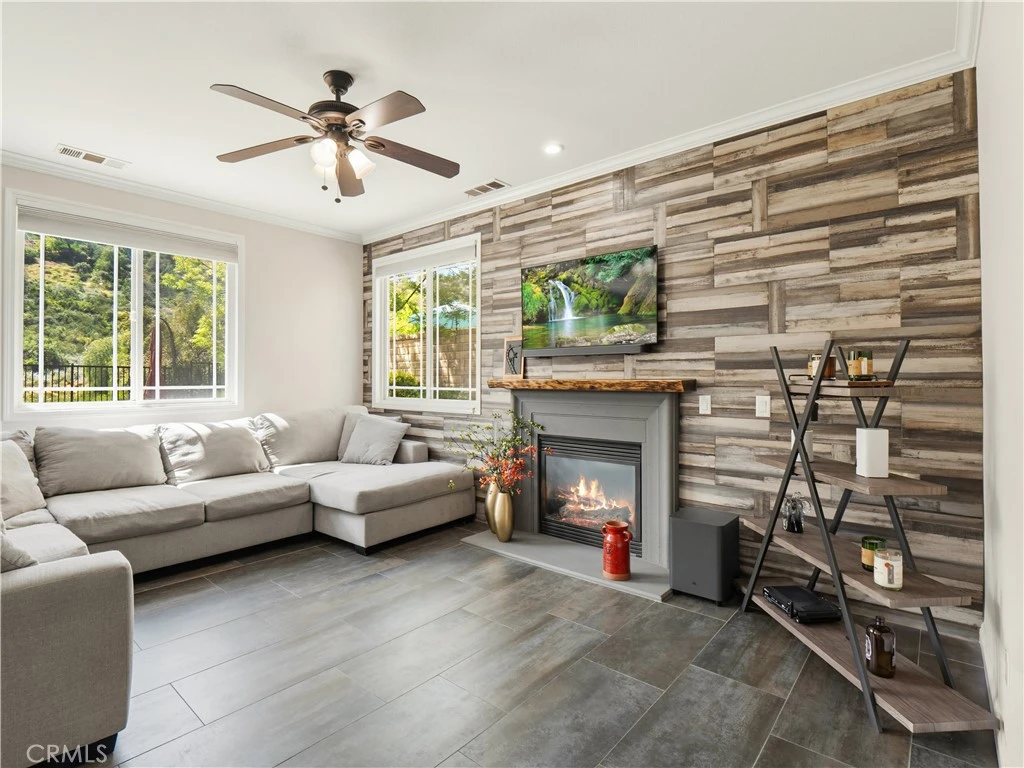 Stunning upgraded Santa Clarita home featuring 3 bedrooms + HUGE loft (possible 4th/5th bedroom), 2.5 baths, owned solar, mountain views, and a beautifully landscaped yard with low HOA. Located in a desirable SCV neighborhood near Golden Valley Park, this light and bright home offers an open-concept great room with a stylish accent wall and cozy fireplace. The upgraded eat-in kitchen features a center island overlooking the backyard, abundant counter space, built-in desk area, wine fridge, double ovens, granite countertops, stainless steel appliances, and upgraded cabinetry. The lower level also includes a convenient powder room and a laundry area with a skylight. Upstairs, the expansive loft provides incredible flexibility—ideal for additional bedrooms, a second living space, playroom, or home gym. The oversized primary suite features vaulted ceilings, dual sinks, a soaking tub, glass-enclosed walk-in shower, and a spacious walk-in closet. Two additional bedrooms with mirrored wardrobe doors and a full bathroom with dual sinks complete the upper level. The freshly painted exterior showcases turf, manicured landscaping, and beautiful hardscape, creating a low-maintenance and inviting outdoor space. Additional highlights include upgraded flooring, fresh interior paint, smart blinds in the living room and kitchen, ceiling fans, and a smart door lock. Ideally located near Golden Valley Park (dog park, playground, and basketball courts), Skyline Ranch Plaza, shopping, dining, award-winning schools, scenic hiking and walking trails, and convenient freeway access. This move-in ready Santa Clarita home with owned solar and a versatile loft is a must-see!