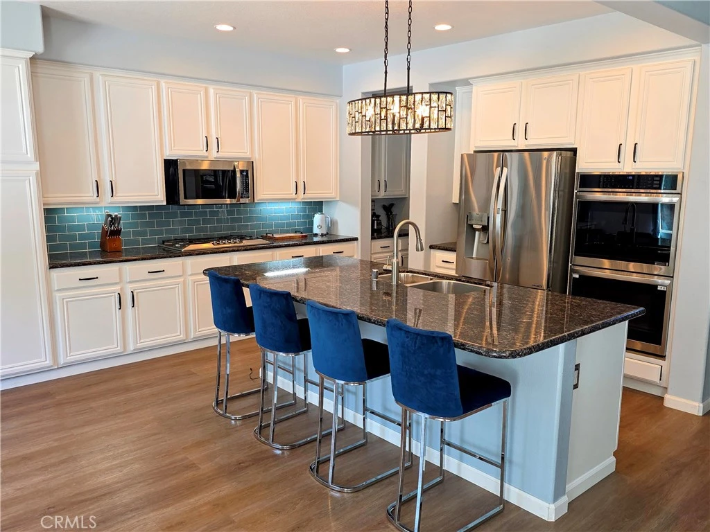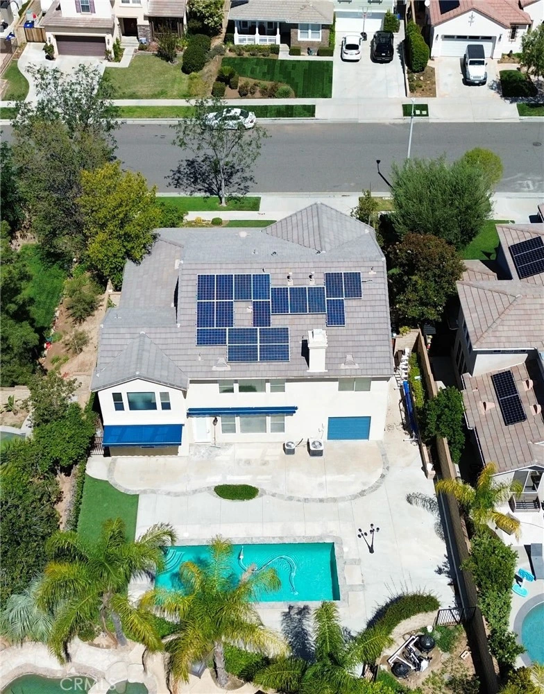 Attention Saugus & Santa Clarita Buyers! Welcome to this one-of-a-kind hilltop executive home that includes Solar (leased with low cost) perfectly situated in the highly sought-after Pacific Crest community. This rare and stunning Timberline Plan 3 offers over 3,100+ square feet of luxurious living space, featuring 4 bedrooms with an optional 5th bedroom downstairs (currently not a bedroom) and 3 bathrooms. From the moment you enter, you’ll notice the extensive upgrades throughout, including beautiful laminate flooring, plantation shutters, and custom drapery. The home boasts an expansive family room with a custom entertainment center and cozy gas fireplace, alongside a formal dining room highlighted by elegant coffered ceilings. The inviting front sitting area opens through double doors to a covered patio—perfect for relaxing or entertaining guests. At the heart of the home is a massive chef’s kitchen featuring a large center island, upgraded granite countertops, stainless steel appliances, 5-burner cooktop, double ovens plus a microwave, butler’s pantry storage. Upstairs, a striking wrought-iron staircase leads to four oversized bedrooms, including a grand primary suite with breathtaking mountain views from the front windows. The luxurious primary bath offers dual sinks, a large walk-in tiled shower, a separate soaking tub, and dual walk-in closets. Skylights brighten the hallway that lead to the 3 other generous sized bedrooms plenty of closet storage. Step outside to your private backyard retreat, complete with a lap pool, artificial turf play area, side yard space. Additional highlights include elegant plantation shutters throughout, a spacious laundry room with ample storage, and a dual HVAC system for year-round comfort. The three-car attached pull-through garage offers exceptional flexibility—ideal for multiple vehicles, a boat, recreational equipment, or even a workshop. Ideally located directly across from the community park with a covered playground, this home offers both convenience and lifestyle. Perfectly situated near highly rated schools such as Mountain View Elementary, as well as nearby parks, shopping, and dining, this home truly checks every box. Opportunities like this don’t come often—schedule your showing and make it yours today! Don’t miss this incredible opportunity as homes in this community don’t last and sell fast.