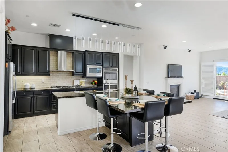 Welcome to this beautifully designed 6-bedroom, 4.5-bathroom home offering over 4,200 square feet of thoughtfully designed living space in the exclusive gated River Village community. With paid solar, flexible living areas, and inviting indoor-outdoor spaces, this home blends comfort, functionality, and entertainment. Inside, the open layout creates an easy flow between the living, dining, and kitchen areas—perfect for everyday living and hosting gatherings. The kitchen features double ovens, huge walk-in pantry, large island with seating for six and plenty of cabinet space. Family room features a fireplace and beautiful views of the surrounding area. Two downstairs bedrooms provide ideal flexibility for guests, multi-generational living, or a private home office. Upstairs, a spacious loft has been transformed into the ultimate entertainment space, featuring a projection screen, built-in surround sound system, blackout blinds, making it perfect for movie nights, game days, or relaxing evenings at home. The primary suite features gorgeous views, a retreat, en-suite bathroom with two walk in closet, double sinks and a soaking tub. There are 3 more bedrooms upstairs, one with an attached bathroom, making it mini primary suite. Laundry room is conveniently located upstairs with sink and large walk-in linen closet. An enclosed sunroom offers additional year-round living space and a wonderful place to relax or entertain while enjoying views of the backyard. Step outside to your private backyard retreat featuring incredible views of Santa Clarita, a water feature with fountains and firepit, creating a peaceful setting for outdoor gatherings or quiet evenings under the stars. Additional highlights include paid solar for energy efficiency and savings, a 3-car garage, and generous living space designed to accommodate modern lifestyles. Don’t miss the opportunity to own this exceptional home in a highly desirable gated Santa Clarita community. Schedule your private showing today.
