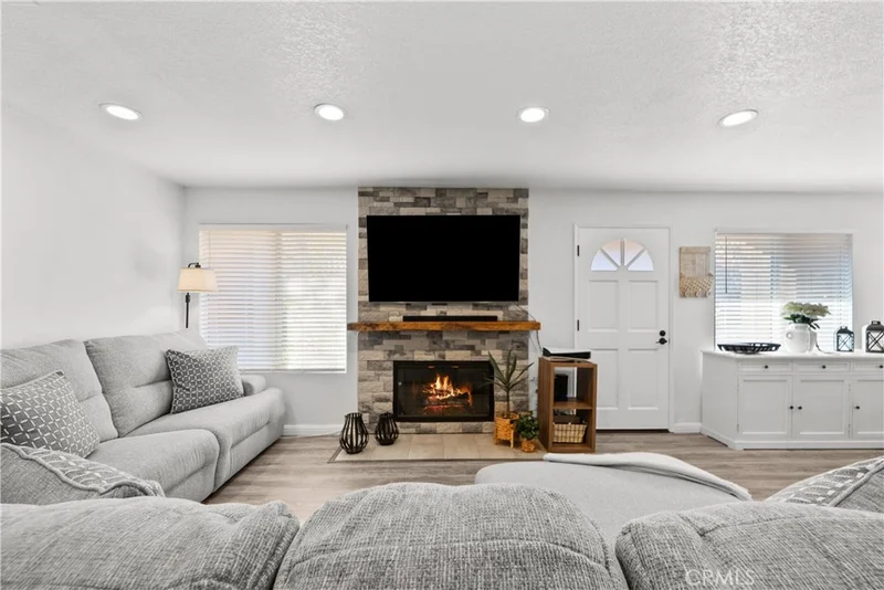 Welcome home to this charming 2-bedroom, 2.5-bathroom, 1,1131 sq. ft. townhome nestled in the gated Seco Villas community of Mountain View Villas, tucked away in beautiful Santa Clarita. Step through the private front courtyard and enter into an inviting open floor plan with a great-room style main floor. The living room is flooded with natural light, newer laminate flooring, recessed lighting, and features a stacked stone cozy fireplace. The adjacent dining area is highlighted with two windows and opens into the kitchen. The kitchen boasts a garden window, ample storage, tile countertops, new stainless steel appliances, and a convenient breakfast bar for casual dining. Additional main-floor features include a powder bath and direct access to the attached two-car garage with an in-unit laundry area. Garge floor has an epoxy coating, and there are lots of storage opportunities. Upstairs, the home continues to impress with laminate flooring on the stairs and throughout the upstairs areas. The primary suite offers vaulted ceilings, a walk-in closet closet and a private ensuite bath. The primary bathroom has been fully remodeled with a charming barn door, custom tile shower, frameless glass door, decorator vanity with double sinks, new lighting, and new fixtures and tile floor. The second spacious bedroom also has vaulted ceilings, a mirrored wardrobe door, and an ensuite bathroom. This bathroom is also newly remodeled with a beautiful tile tub/shower, new vanity, lighting, and mirror. The front courtyard—perfect for indoor-outdoor living. The friendly and welcoming Seco Villas community features beautifully landscaped common areas, a community pool and spa, and the added security of gated access. Conveniently located near shopping, dining, entertainment, and recreation, this home offers the perfect blend of comfort and convenience. Don't miss your chance to make this stunning townhome yours!