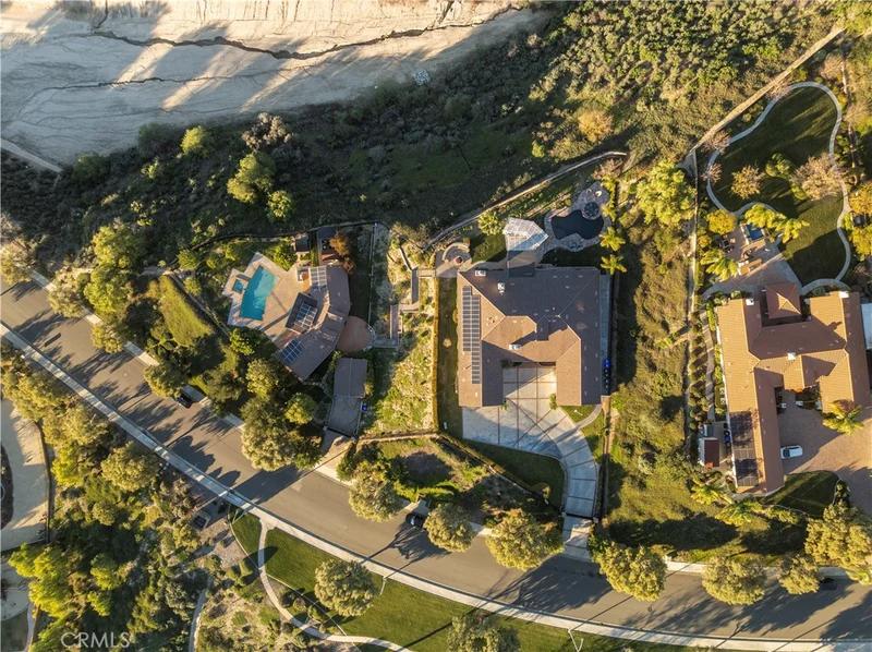 TWO HOMES. TWO POOLS. NEARLY 4 ACRES OF GATED LUXURY WITH PANORAMIC VIEWS. Privately set behind gates on approximately 3.8 ACRES, this extraordinary estate offers unmatched privacy, flexibility, and resort-style living. Featuring TWO SEPARATE RESIDENCES, TWO PRIVATE POOLS, PANORAMIC VIEWS, FULL CITY UTILITIES, NO MELLO-ROOS, 63 FULLY OWNED SOLAR PANELS, and EV CHARGERS AT BOTH HOMES, this rare compound is designed for multigenerational living, rental potential, or a private retreat with long-term energy efficiency. With NO FRONT OR REAR NEIGHBORS, the setting feels expansive and secluded. The SINGLE-STORY MAIN RESIDENCE spans over 3,800 SQ FT with 5 BEDROOMS AND 4 BATHROOMS in a spacious OPEN-CONCEPT LAYOUT ideal for entertaining. A dramatic entry reveals SOARING CEILINGS, upgraded LED lighting, and a stunning FLOOR-TO-CEILING STONE FIREPLACE anchoring the living space. The formal dining room and oversized family room flow into the CHEF’S KITCHEN, appointed with a MASSIVE CENTER ISLAND WITH UTILITY SINK, PREMIUM KITCHENAID APPLIANCES, DOUBLE OVENS, WINE REFRIGERATOR, and a breakfast nook positioned to capture sweeping views. The LUXURIOUS PRIMARY SUITE features a private fireplace, PLANTATION SHUTTERS, DUAL WALK-IN CLOSETS, and a SPA-INSPIRED BATH with soaking tub, oversized glass-enclosed shower with seating, and dual vanities. Additional upgrades include TWO NEW HVAC SYSTEMS, updated irrigation lines, fresh interior and exterior paint, freshly painted perimeter gates, and NEW POOL EQUIPMENT WITH AQUALINK APP CONTROL for modern convenience. The outdoor living spaces are designed for elevated entertaining with a covered patio, BUILT-IN BBQ, CUSTOM FIRE PIT WITH SEATING, grassy areas, and a striking black-bottom pool and spa. The SEPARATE GUEST HOUSE offers approximately 1,200 SQ FT with 2 BEDROOMS AND 3 BATHROOMS, vaulted ceilings, bamboo flooring, and an open design. The kitchen includes double ovens, warming drawer, dishwasher, and breakfast bar. Enjoy its own private pool and spa, outdoor sauna, detached laundry with tankless water heater, covered carport, and separate driveway — providing exceptional independence and flexibility. An expansive GATED MOTOR COURT accommodates approximately 8 VEHICLES, including a FOUR-CAR GARAGE, plus additional guest parking and RV PARKING.