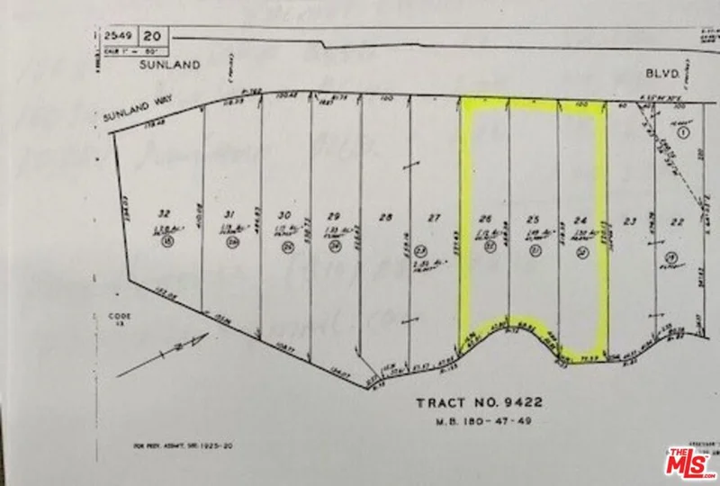 *3 lots w/total of apx.3.4 acres * Shadow Hills Location *Great Development Opportunity for 6 New Homes *Contiguous 3 one acre upslope parcels with 100 foot frontages for each lot * Permitted & completed retaining wall across all 3 lots * Permits, geological + soil reports available from city * Driveway at 10100 Sunland Blvd. at access east side of site *Proposed road between 3 street level homes + 3 above * Some flat area where proposed street is located.1) 10100 Sunland Blvd. apn # 2549-020-020 -1.2 ac 2)10096 Sunland Bl-apn #2549-020-021-1.09 ac 3)10010 Sunland Blvd-apn # 2549-020022-1.12 ac. = Total of apt 3.4 acres. Seller may consider financing.